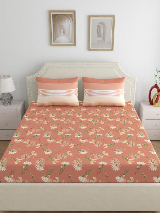 Dreamscape 100% Cotton Floral Bedsheet Set with Pillow Covers | 140TC | Peach | 140 TC |