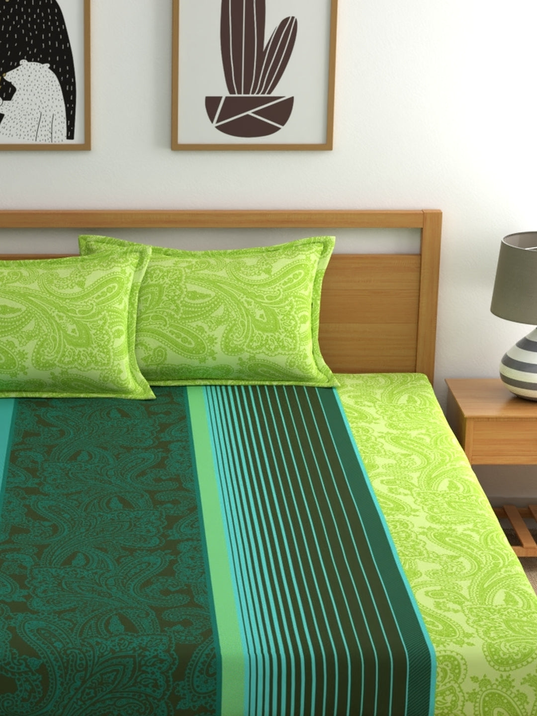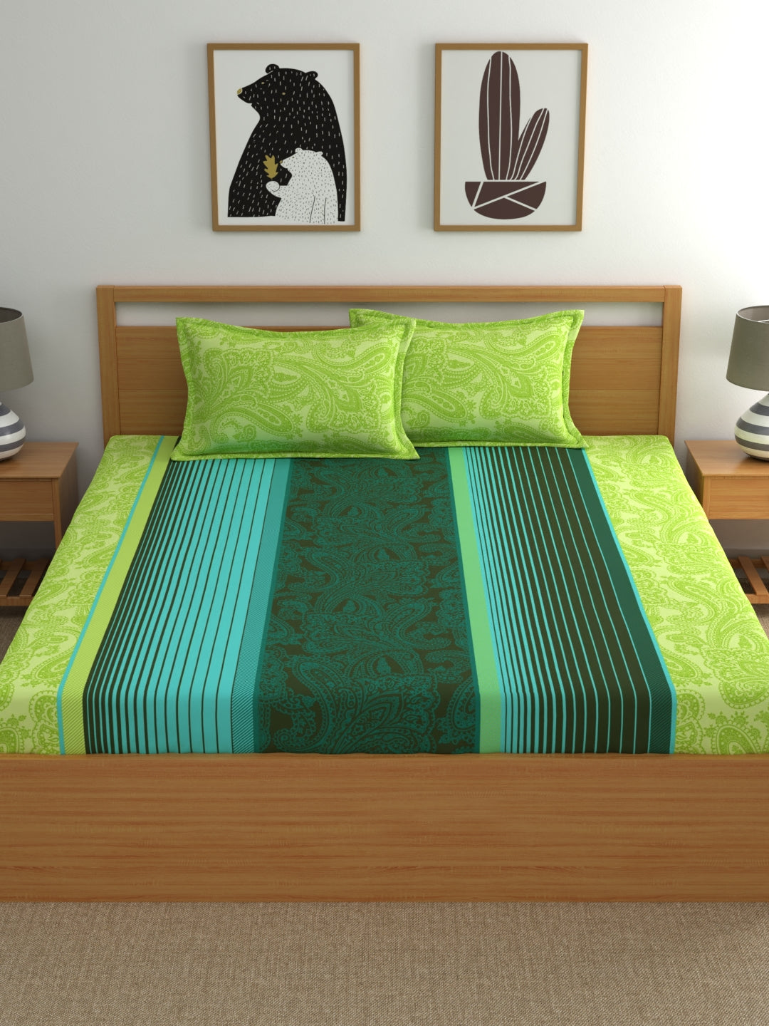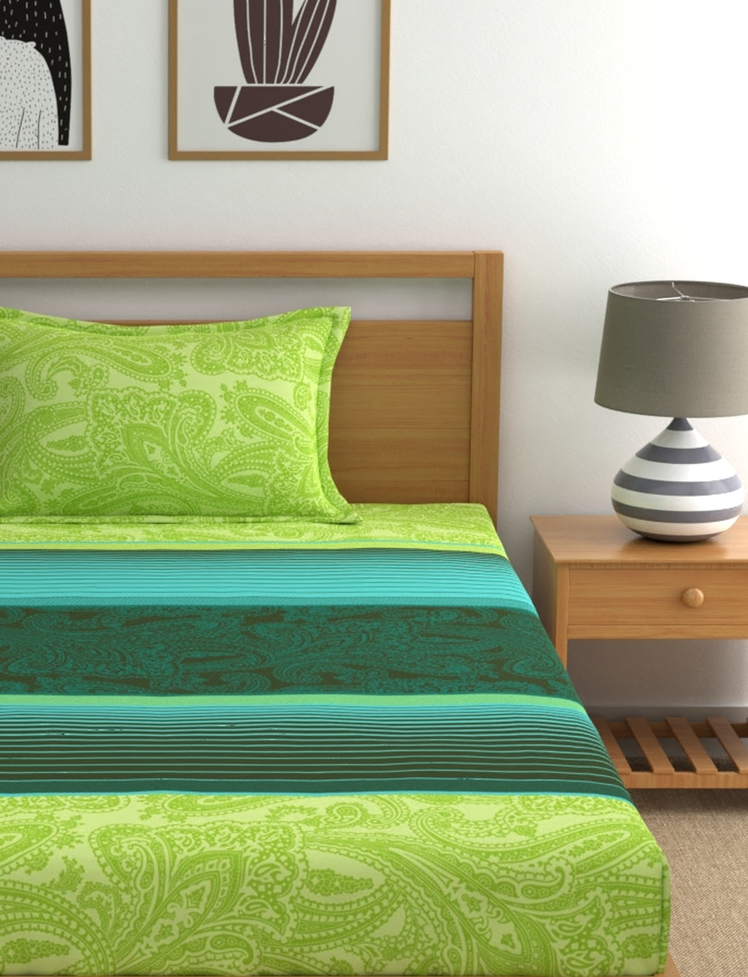 Home Ecstasy 100% Cotton Stripe Bedsheet Set | 140 TC | Lime Green