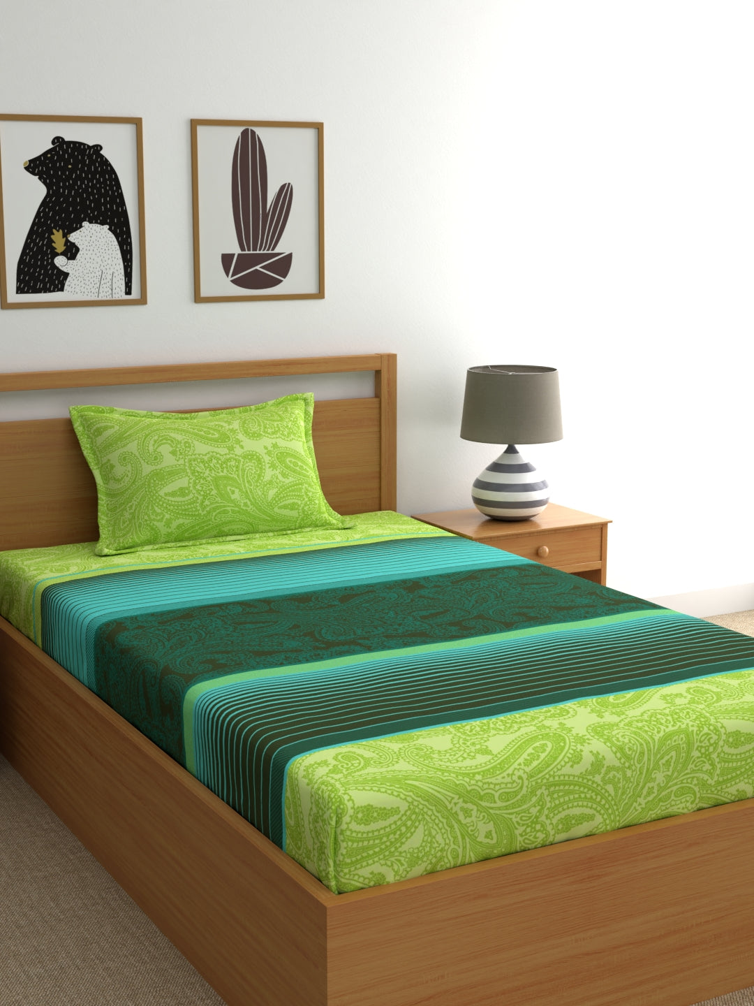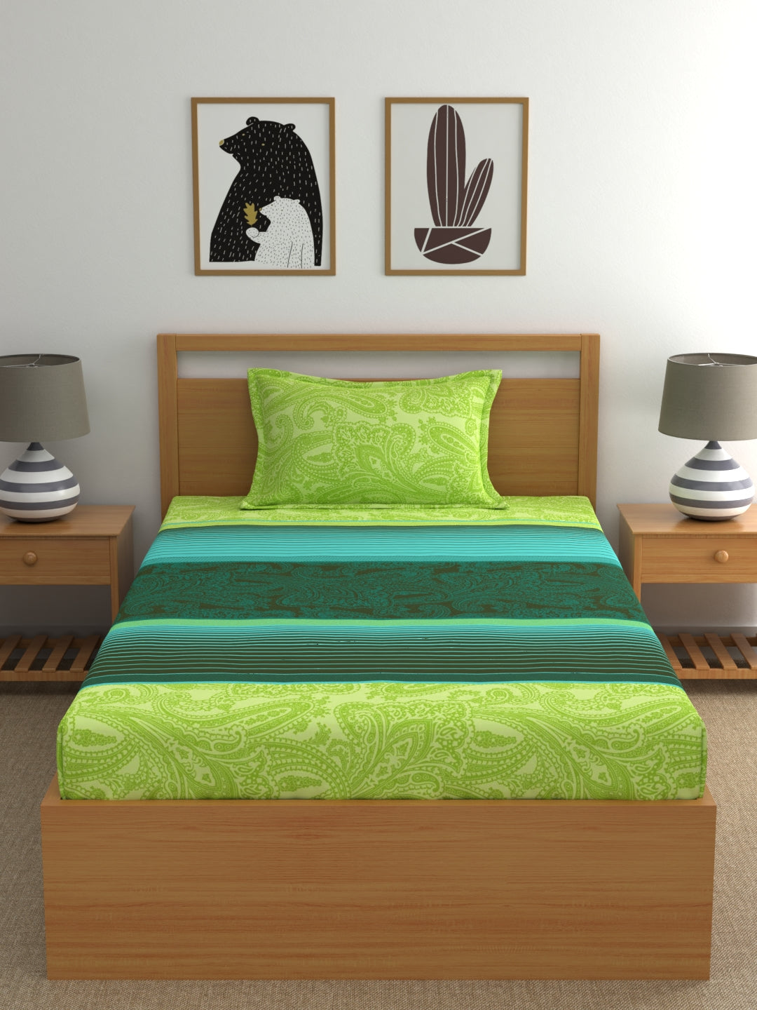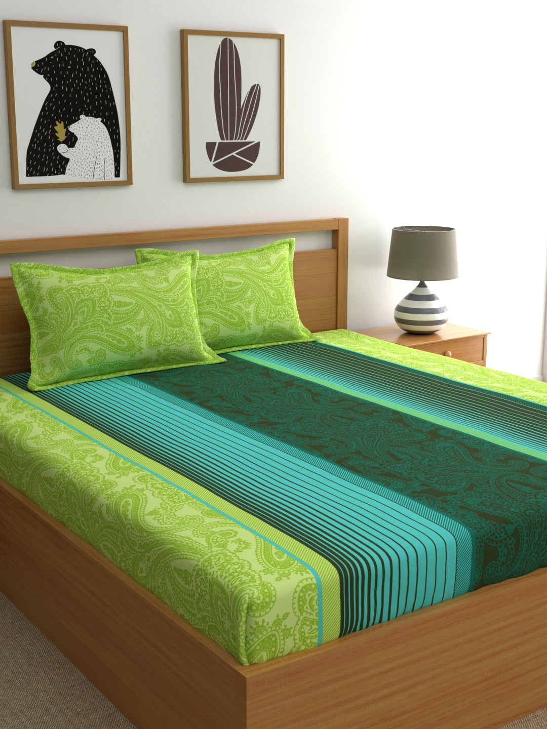 Home Ecstasy 100% Cotton Stripe Bedsheet Set | 140 TC | Lime Green