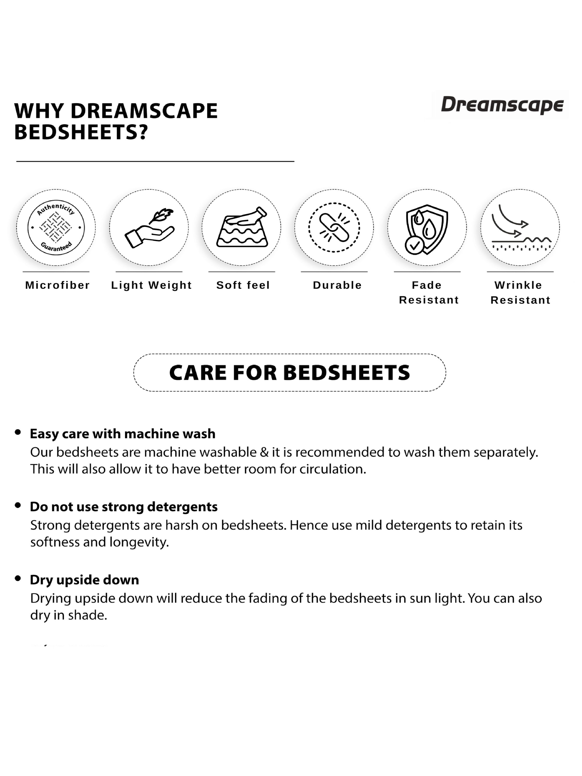Strong detergents are harsh on bedsheets. Hence use mild detergents to retain its softness and longetivity.