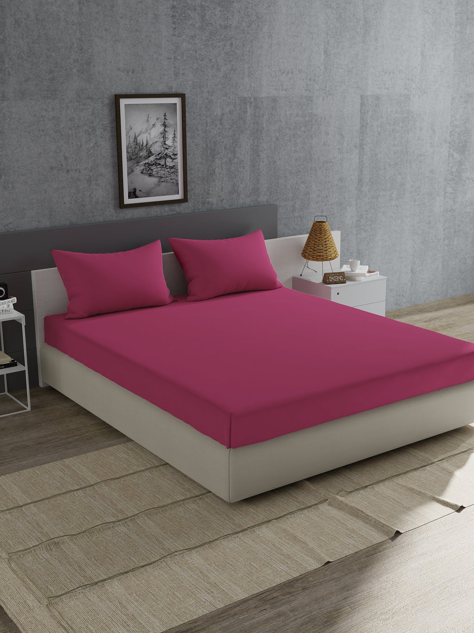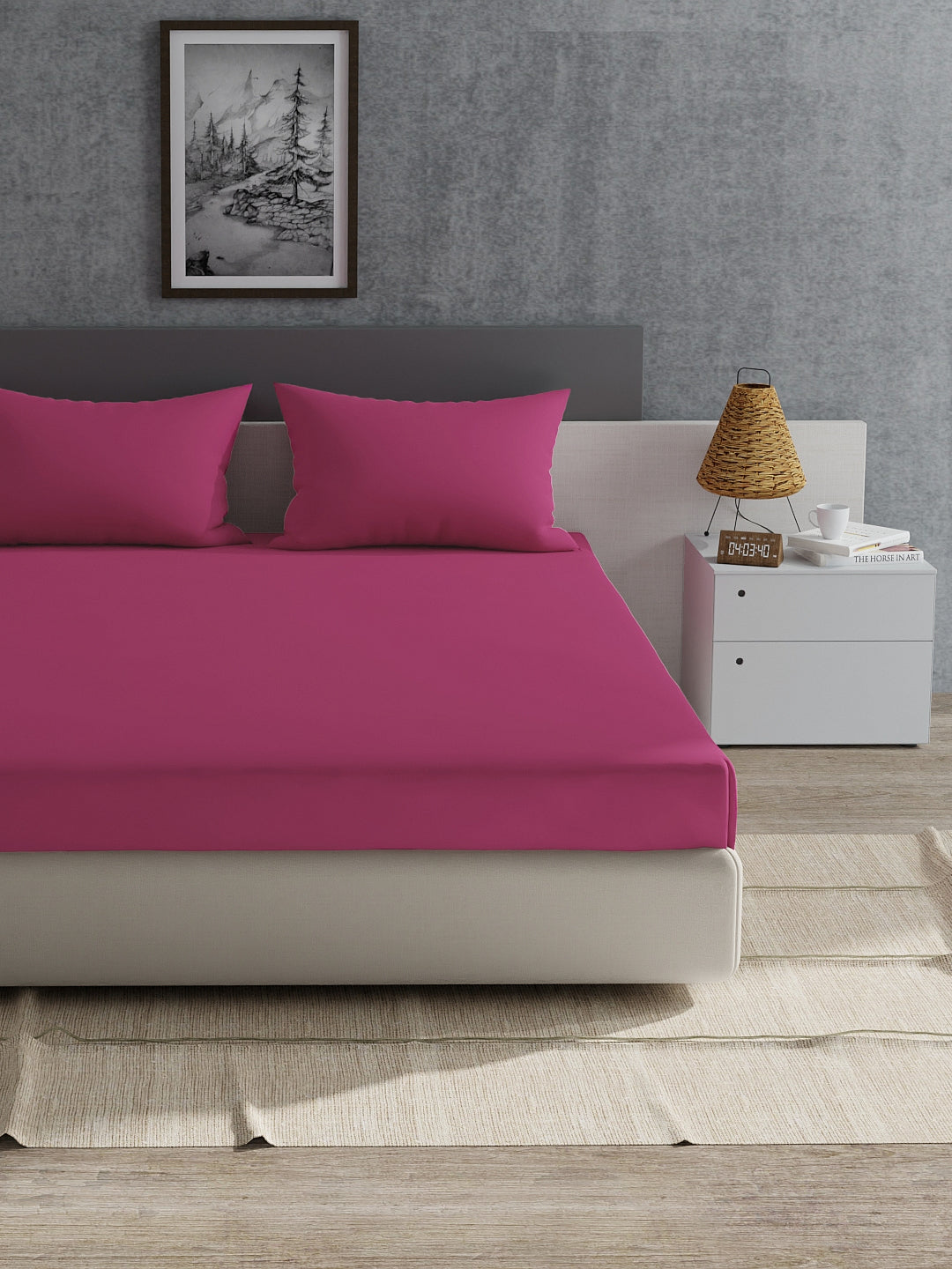 Home Ecstasy 100% Cotton Solid Bedsheet Set | 180 TC | Dark Pink
