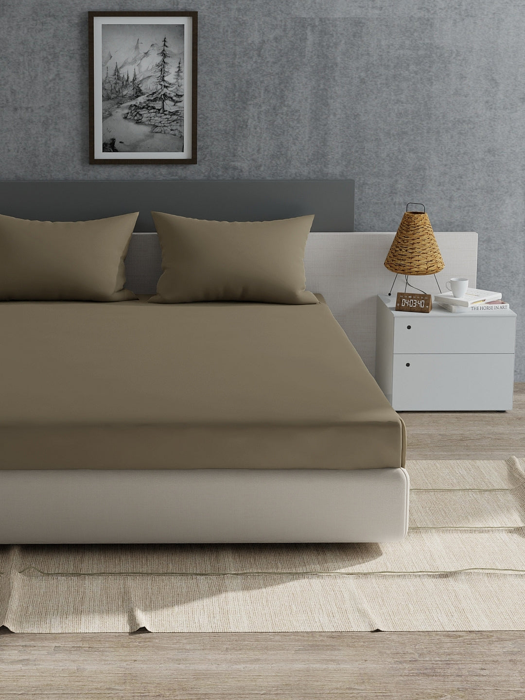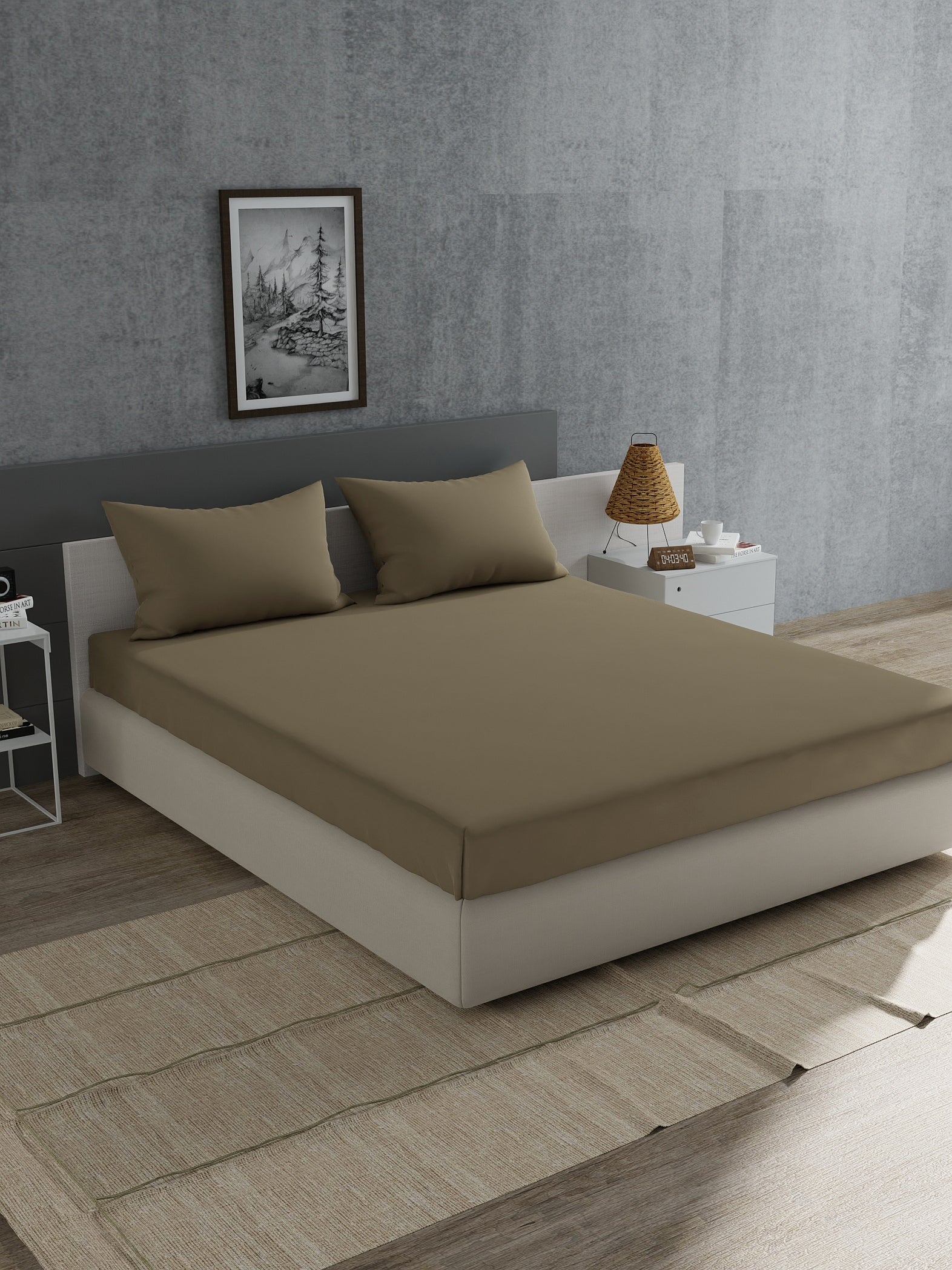 Home Ecstasy 100% Cotton Solid Bedsheet Set | 180 TC | Light Brown