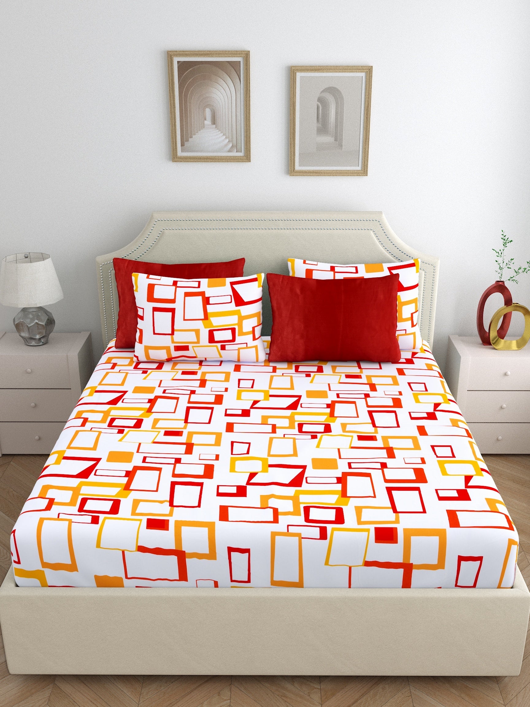 Home Esctasy 100% Cotton Geometric Bedsheet Set | 140 TC | Orange