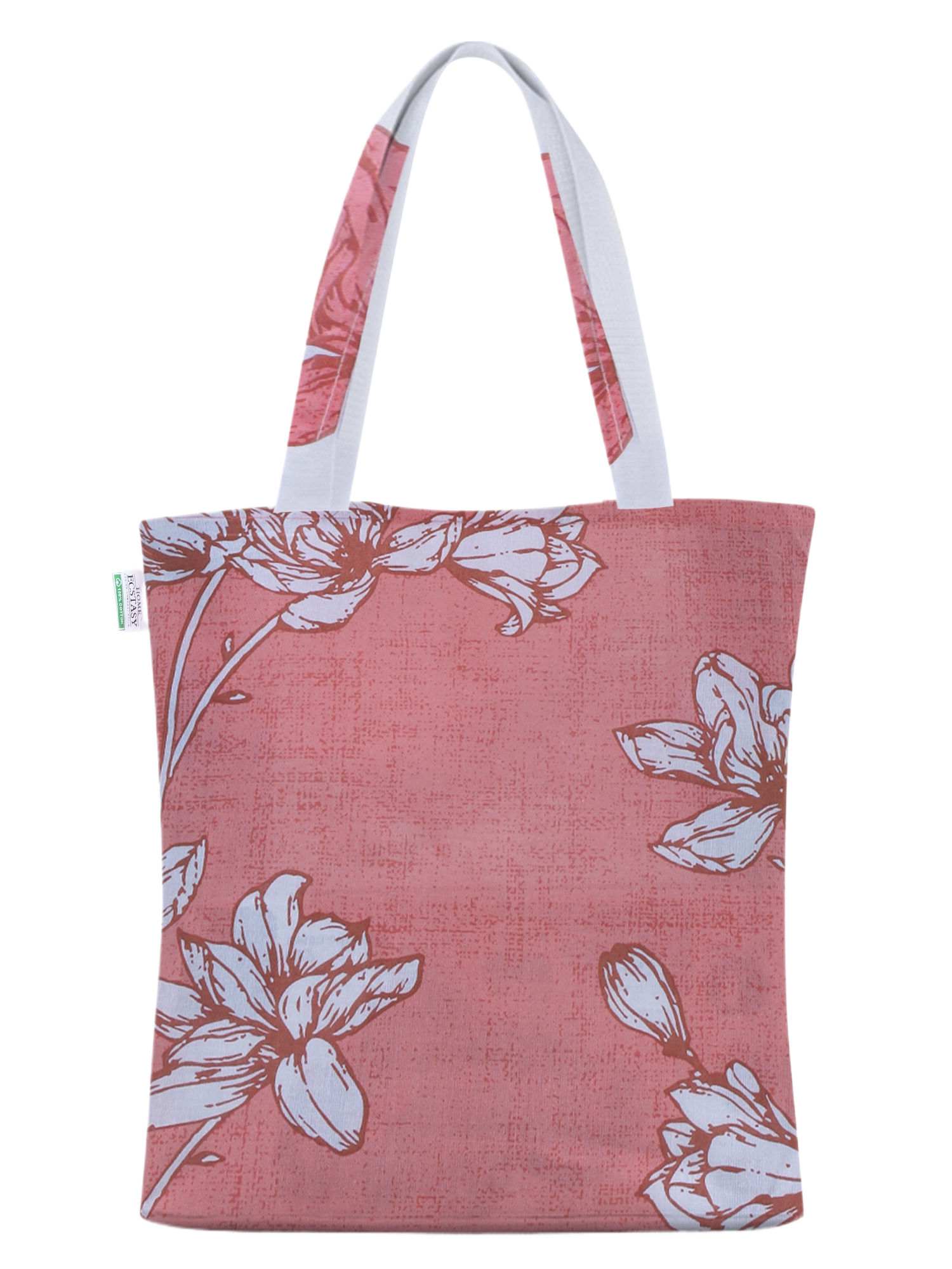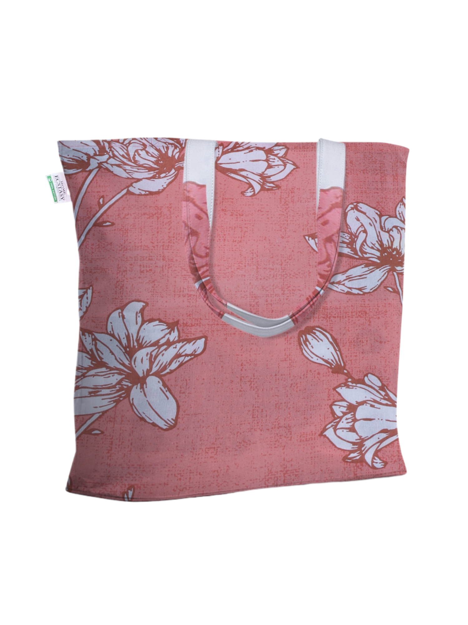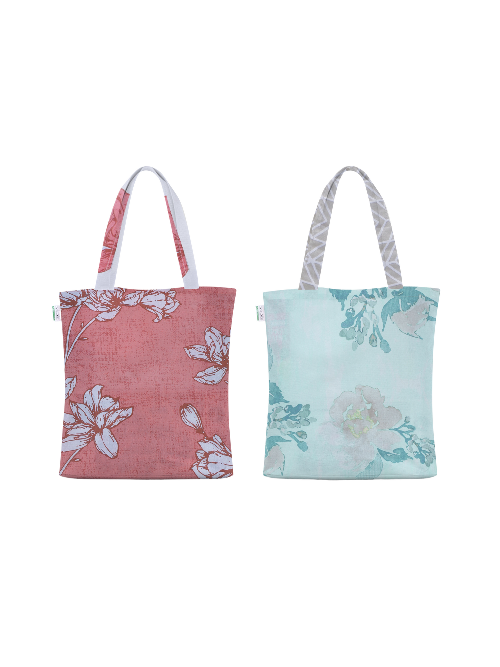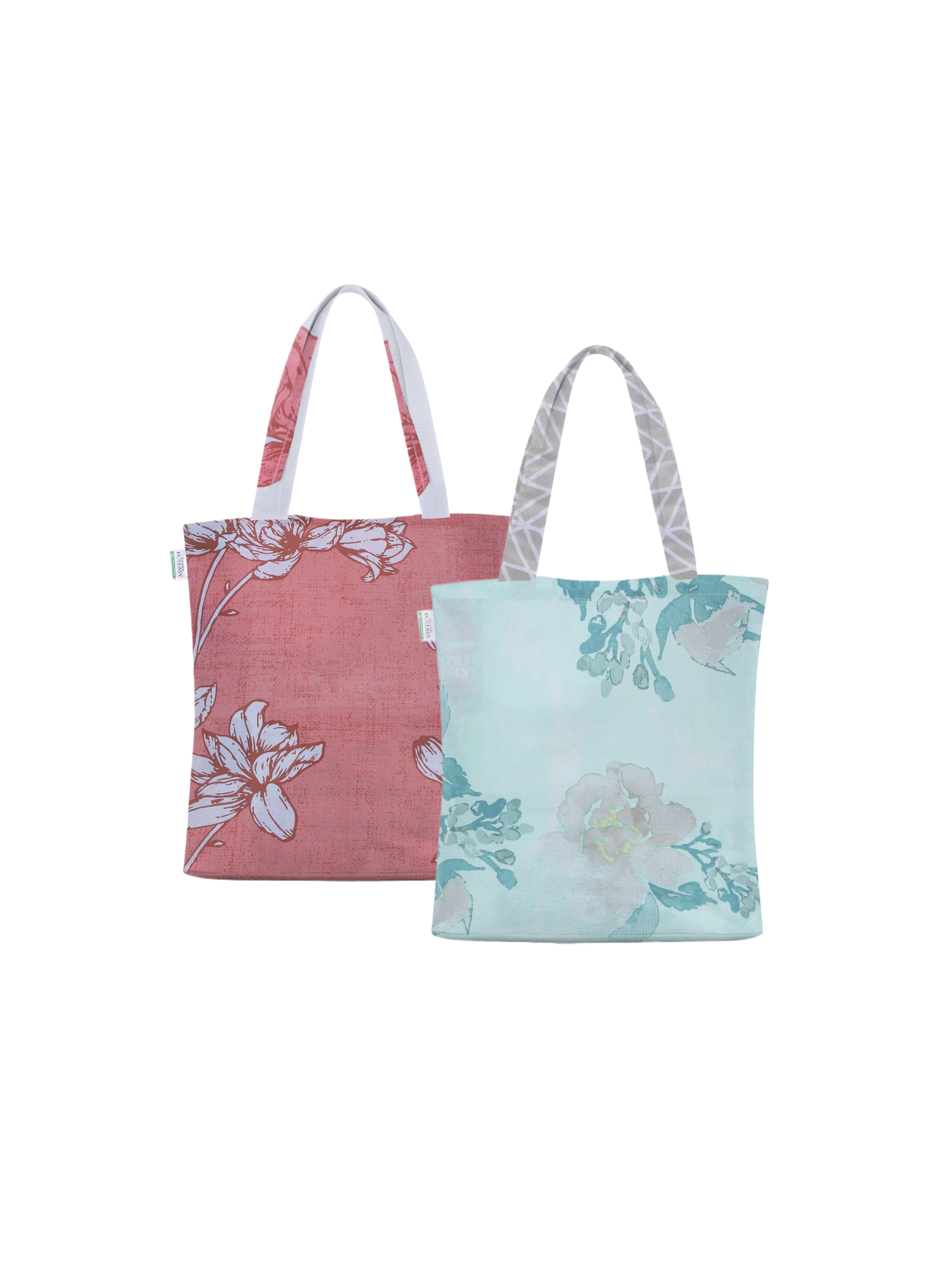 Home Ecstasy 100% Cotton Floral Tote Bag Set Of 2 | 140 TC | Brown and Peach