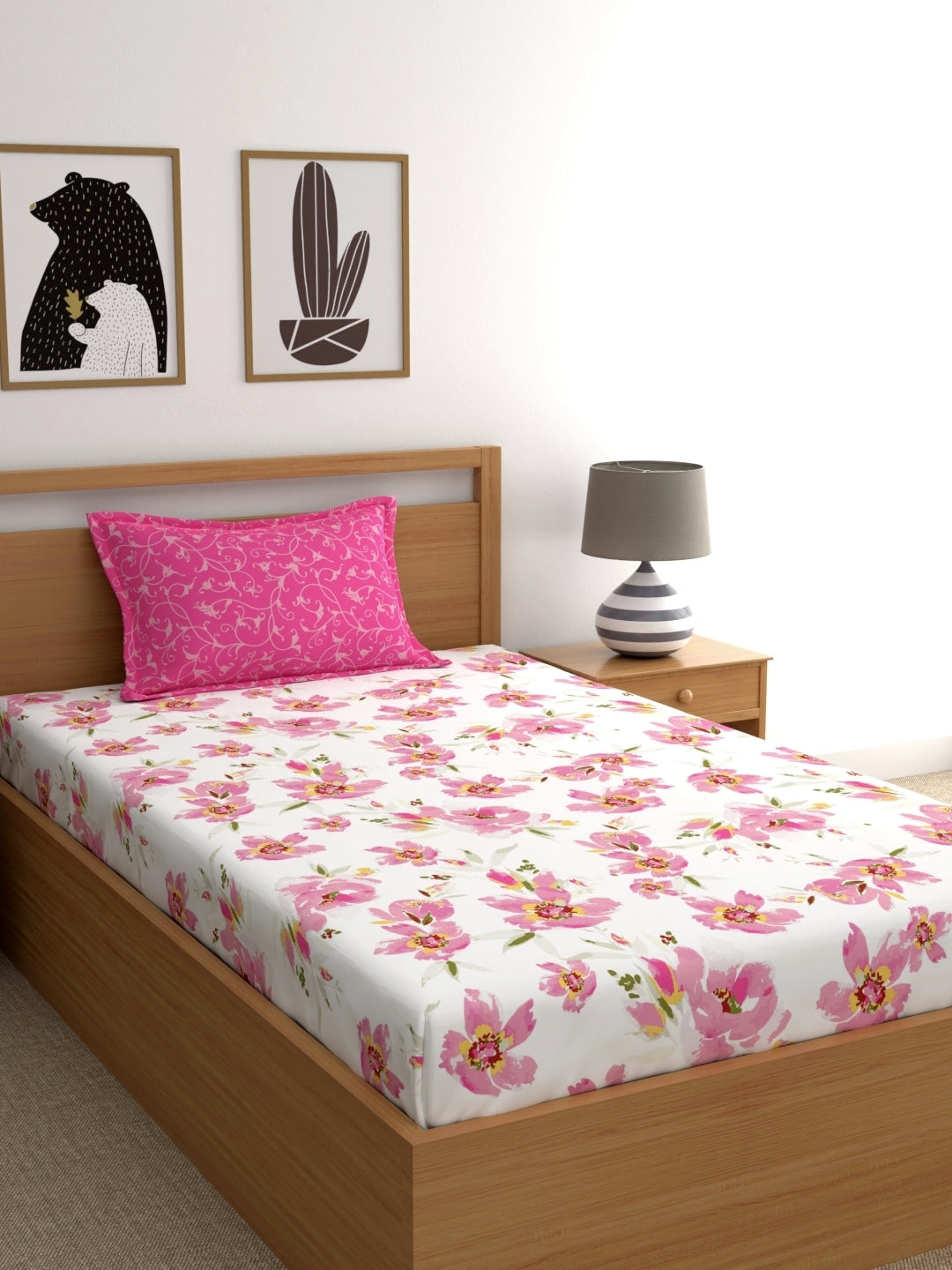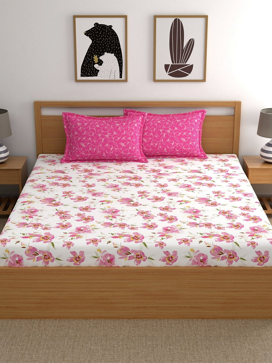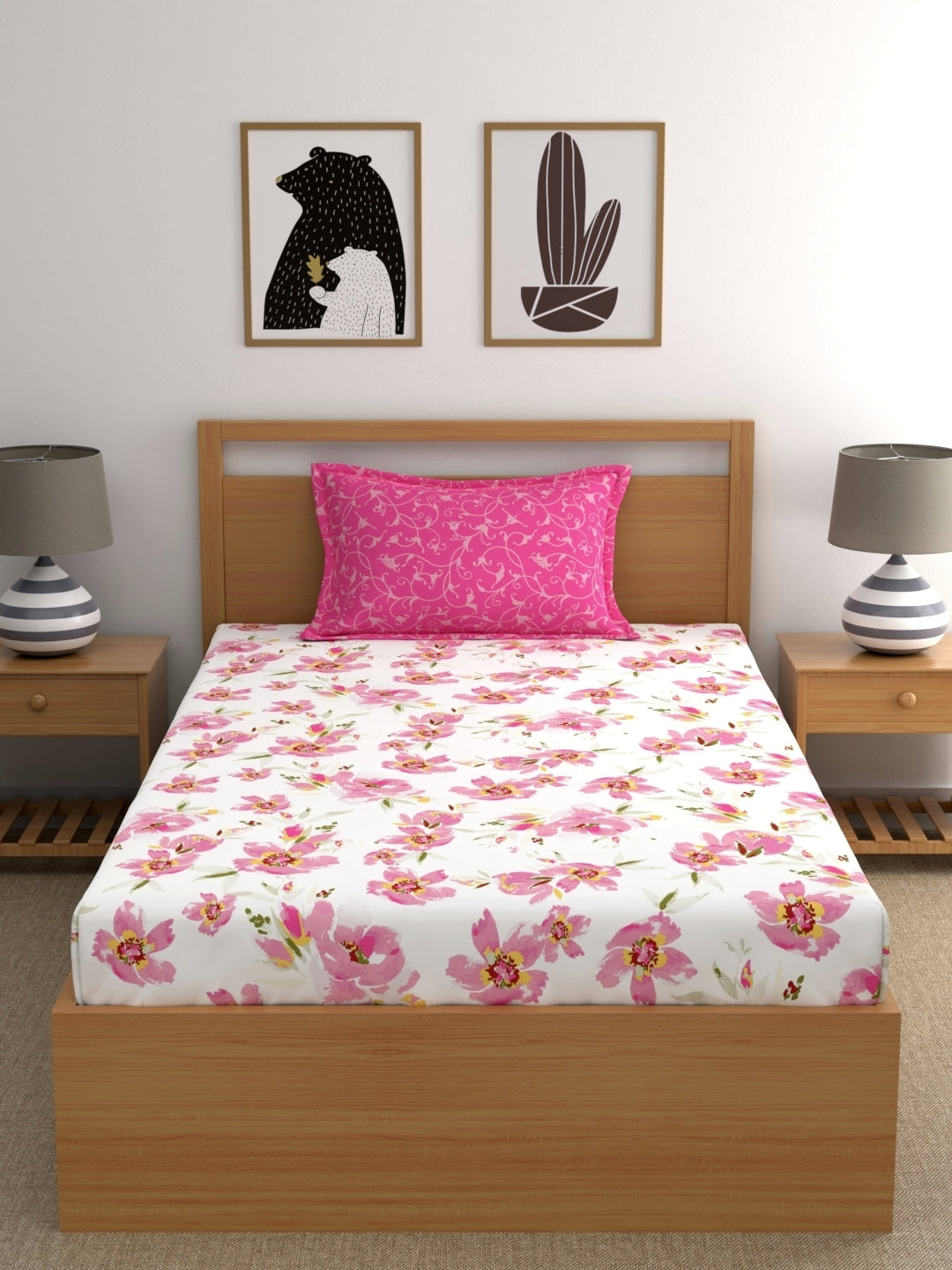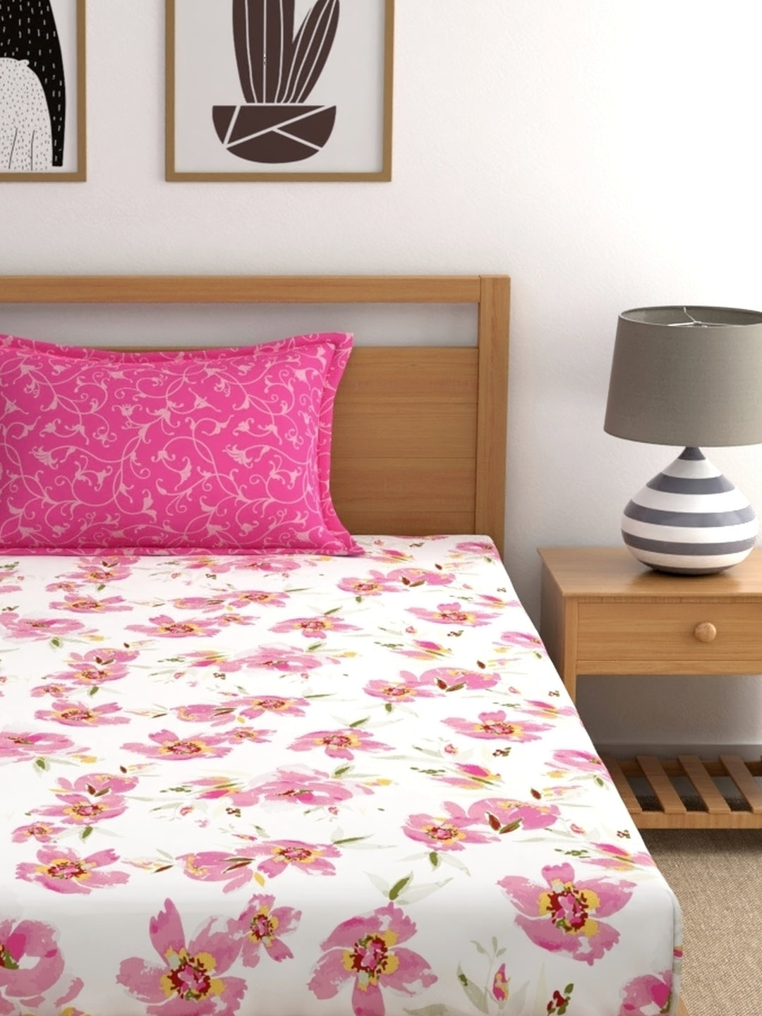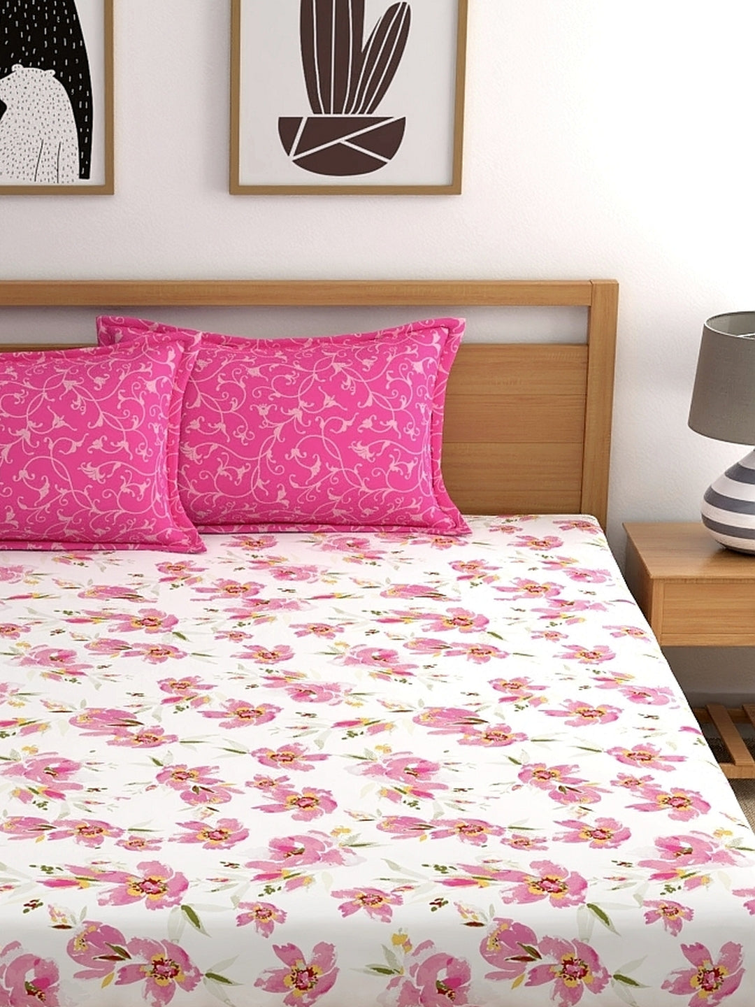 Home Ecstasy 100% Cotton Floral Bedsheet Set | 140 TC | Light Pink