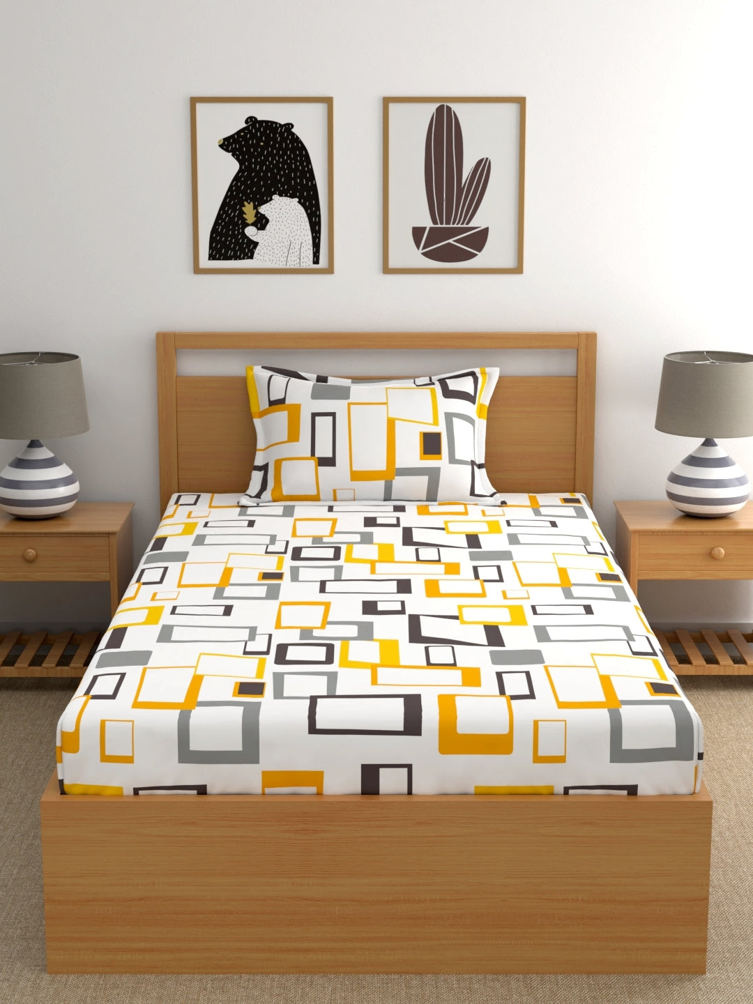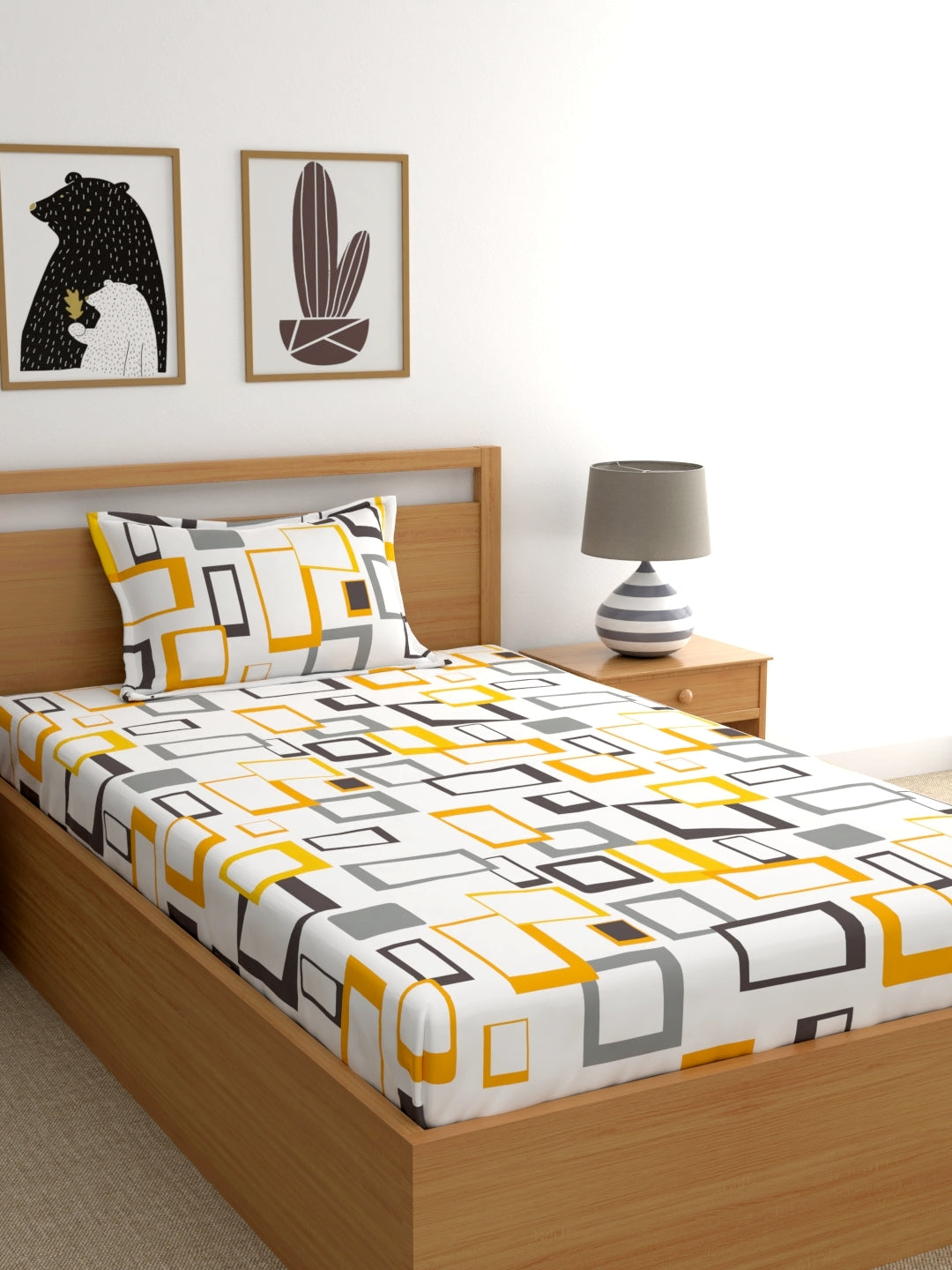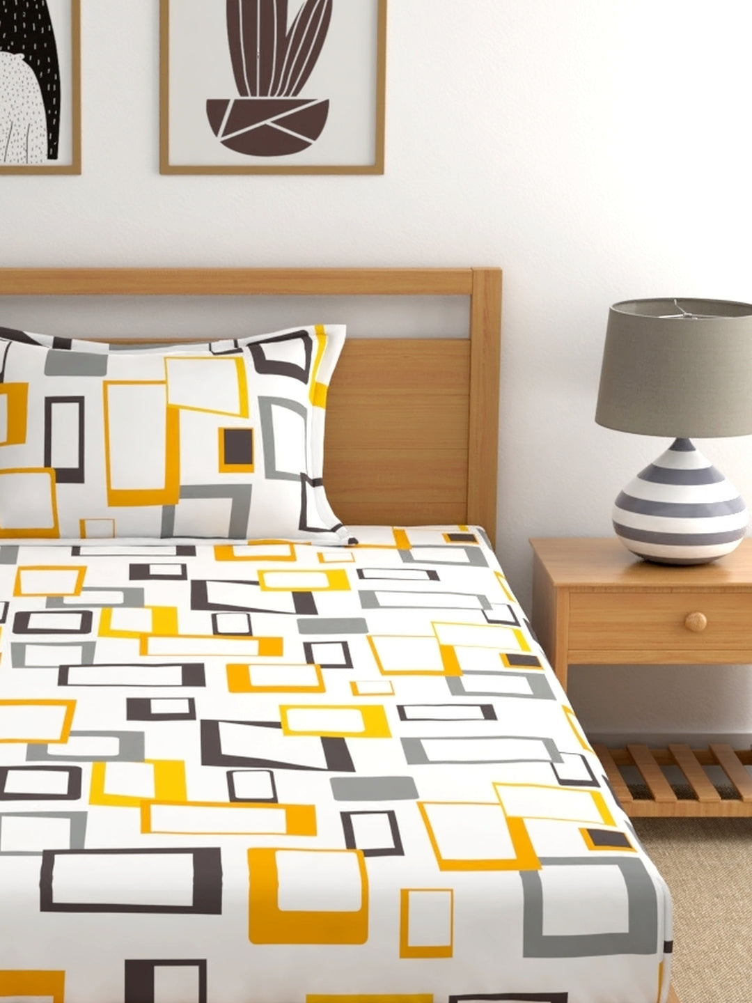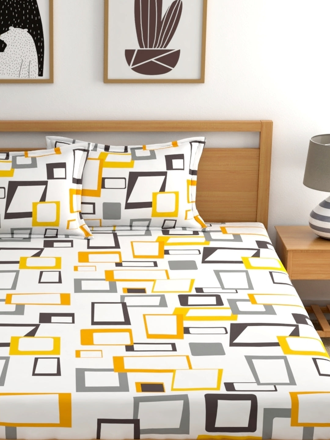 Home Esctasy 100% Cotton Geometric Bedsheet Set | 140 TC | Yellow