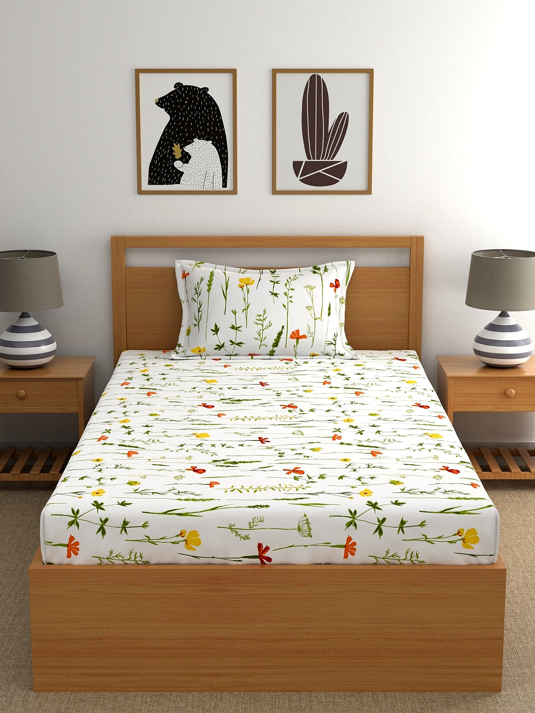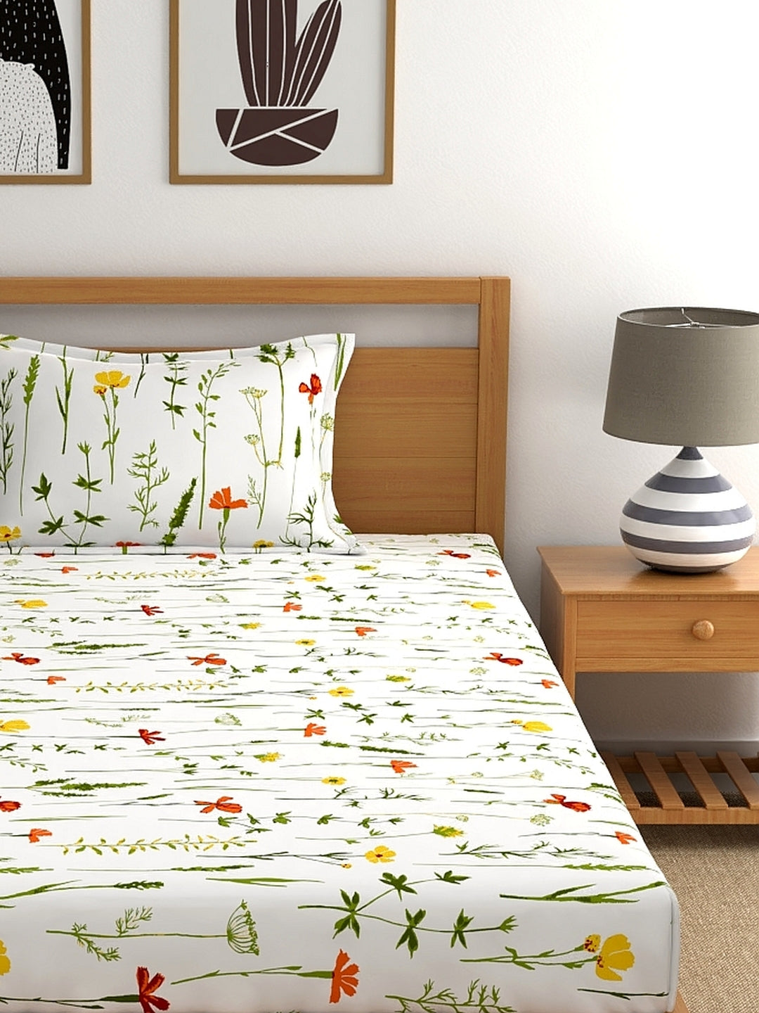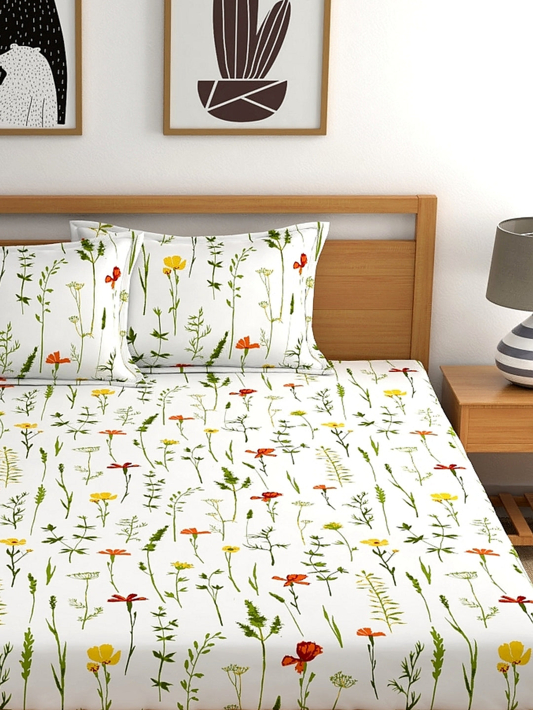 Home Ecstasy 100% Cotton Floral Bedsheet Set | 140 TC | Yellow and Orange