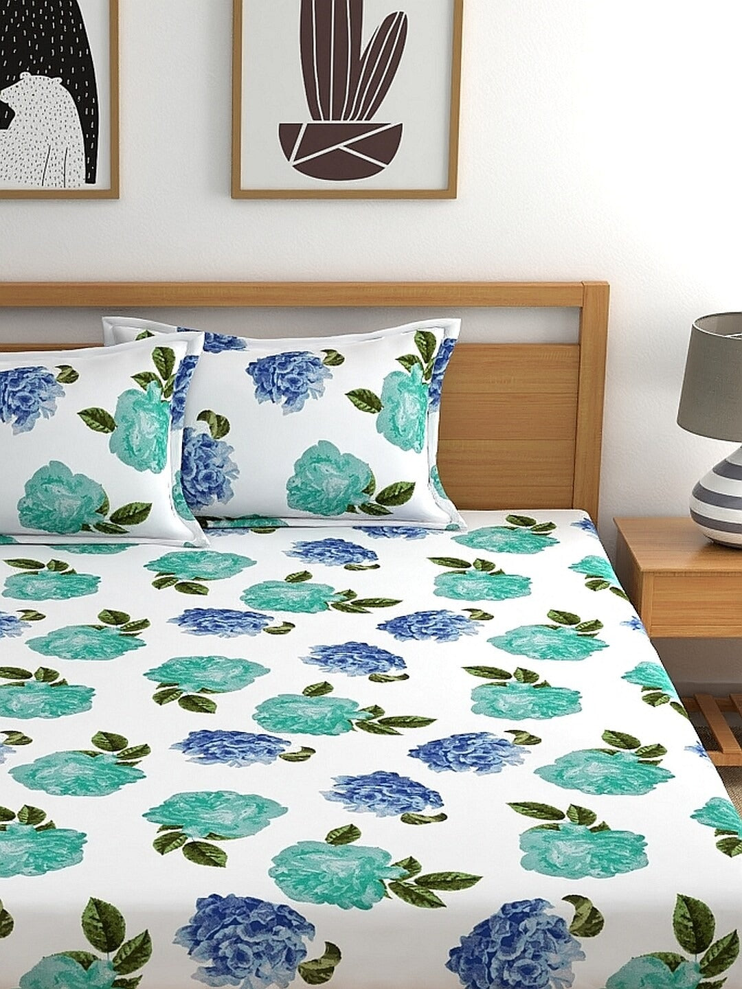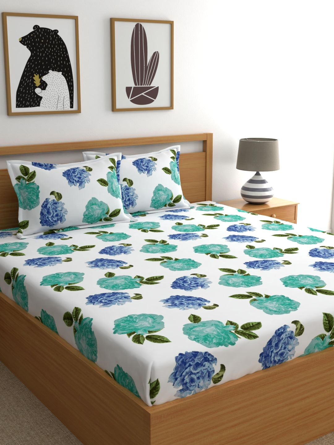 Home Ecstasy 100% Cotton Floral Bedsheet Set | 140 TC | White
