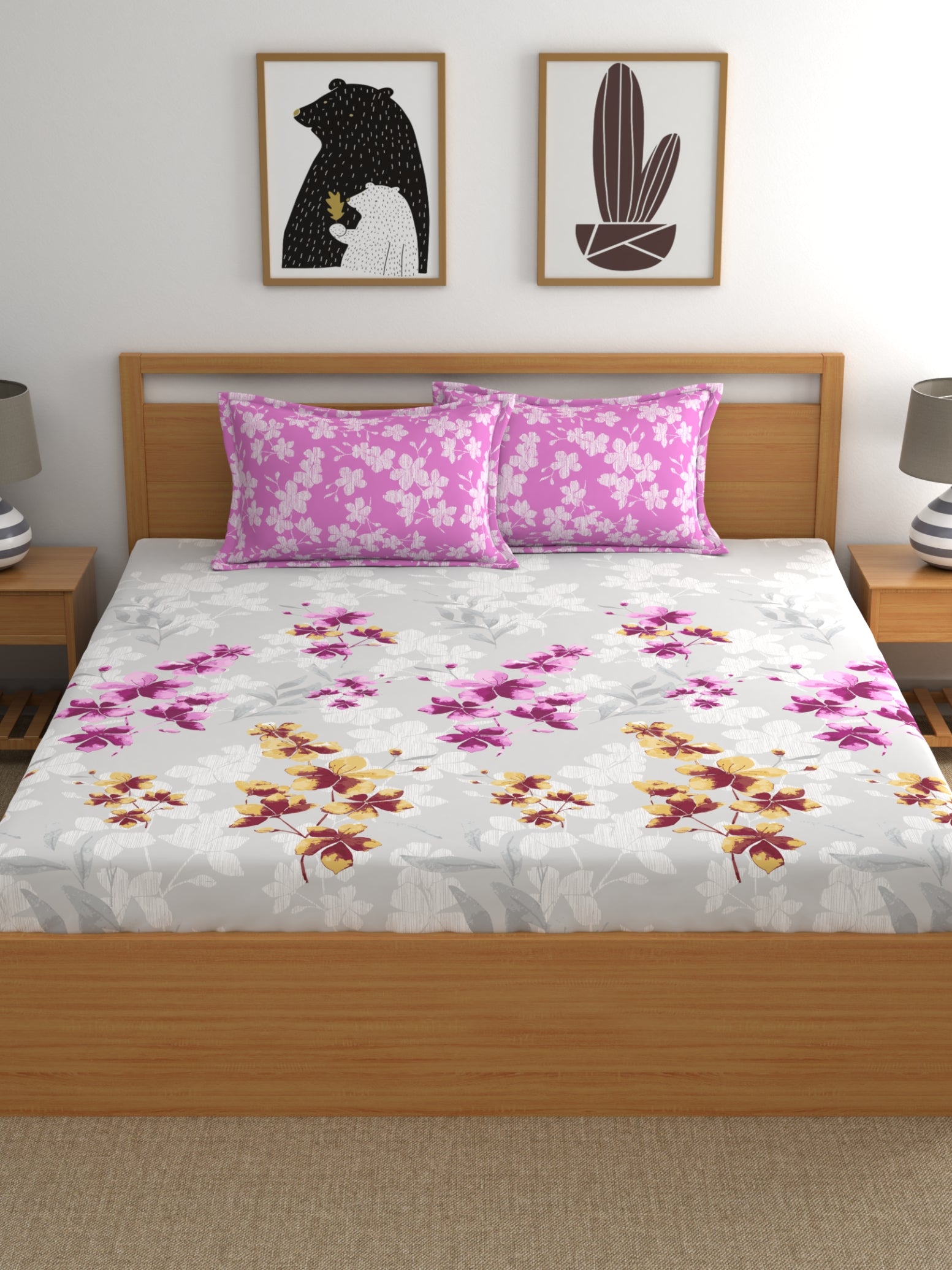 Home Ecstasy 100% Cotton Floral Bedsheet Set | 140 TC | Light Pink