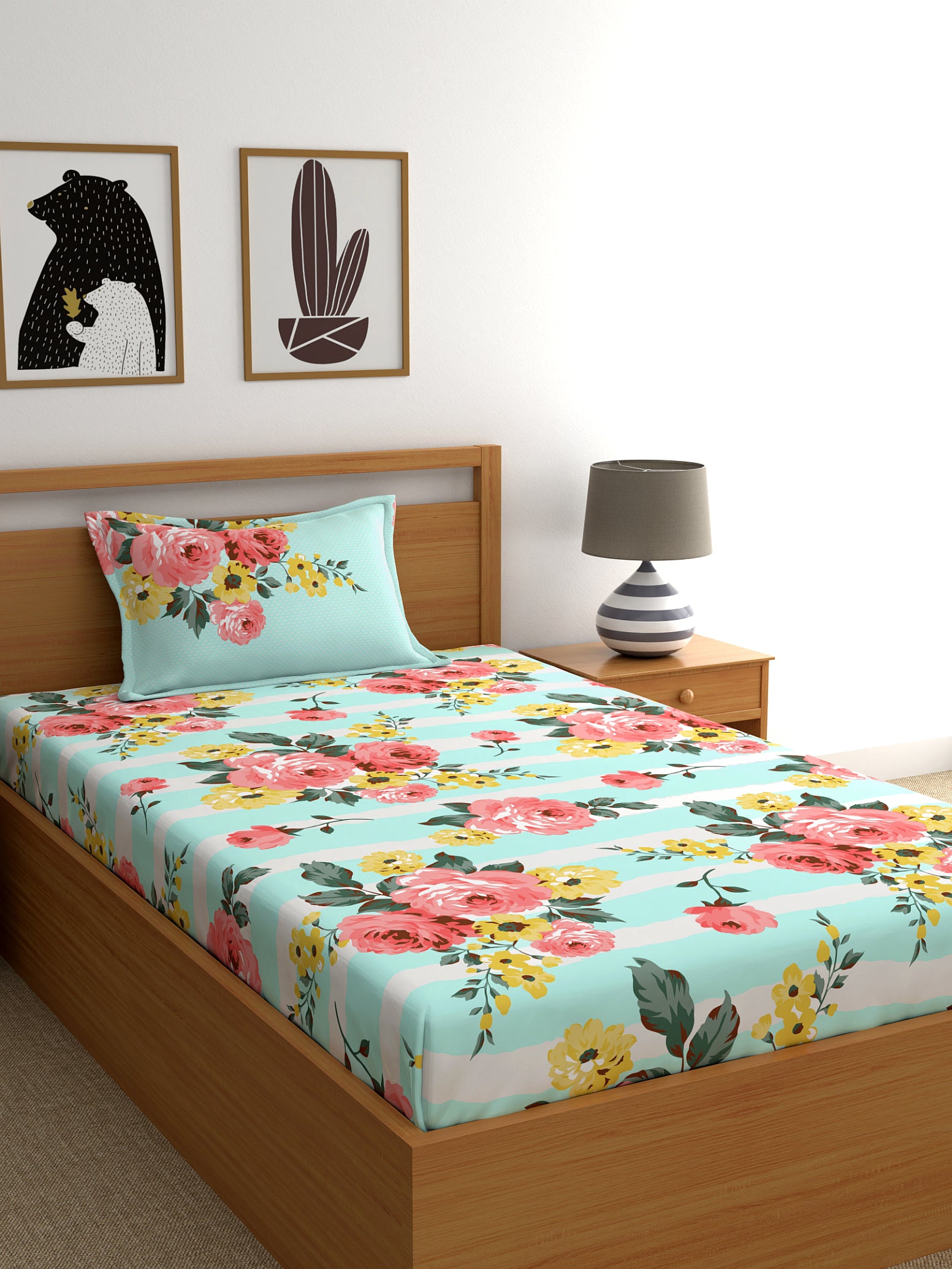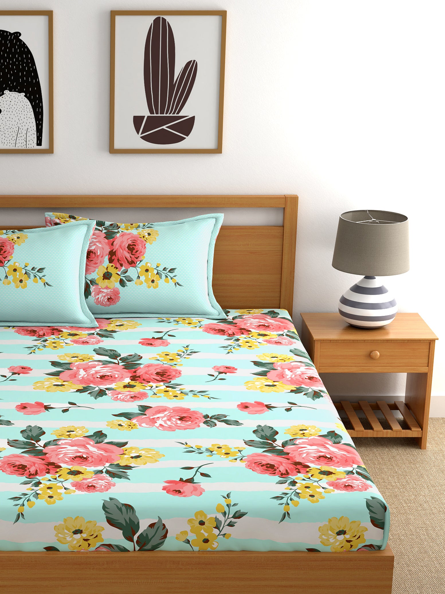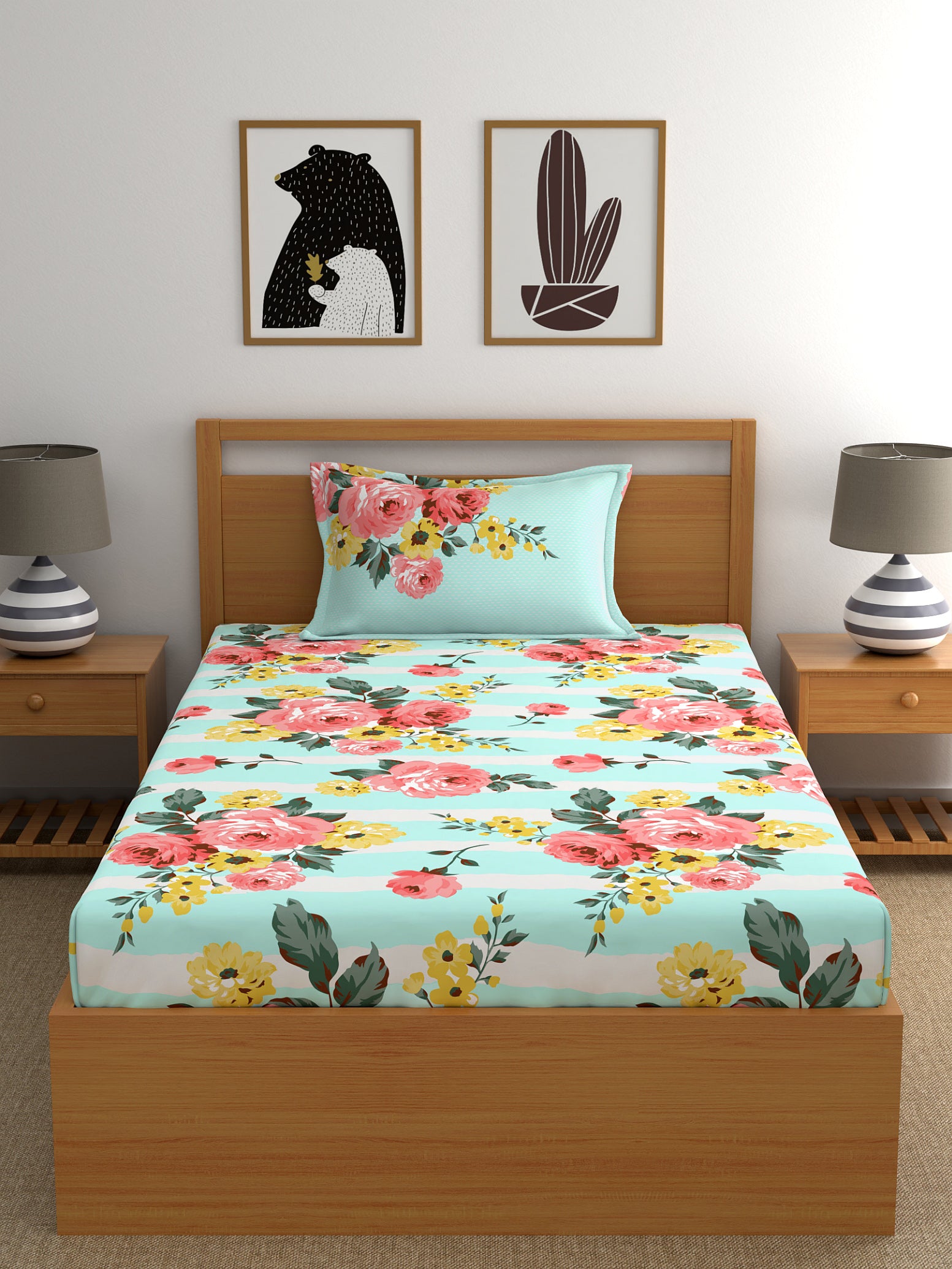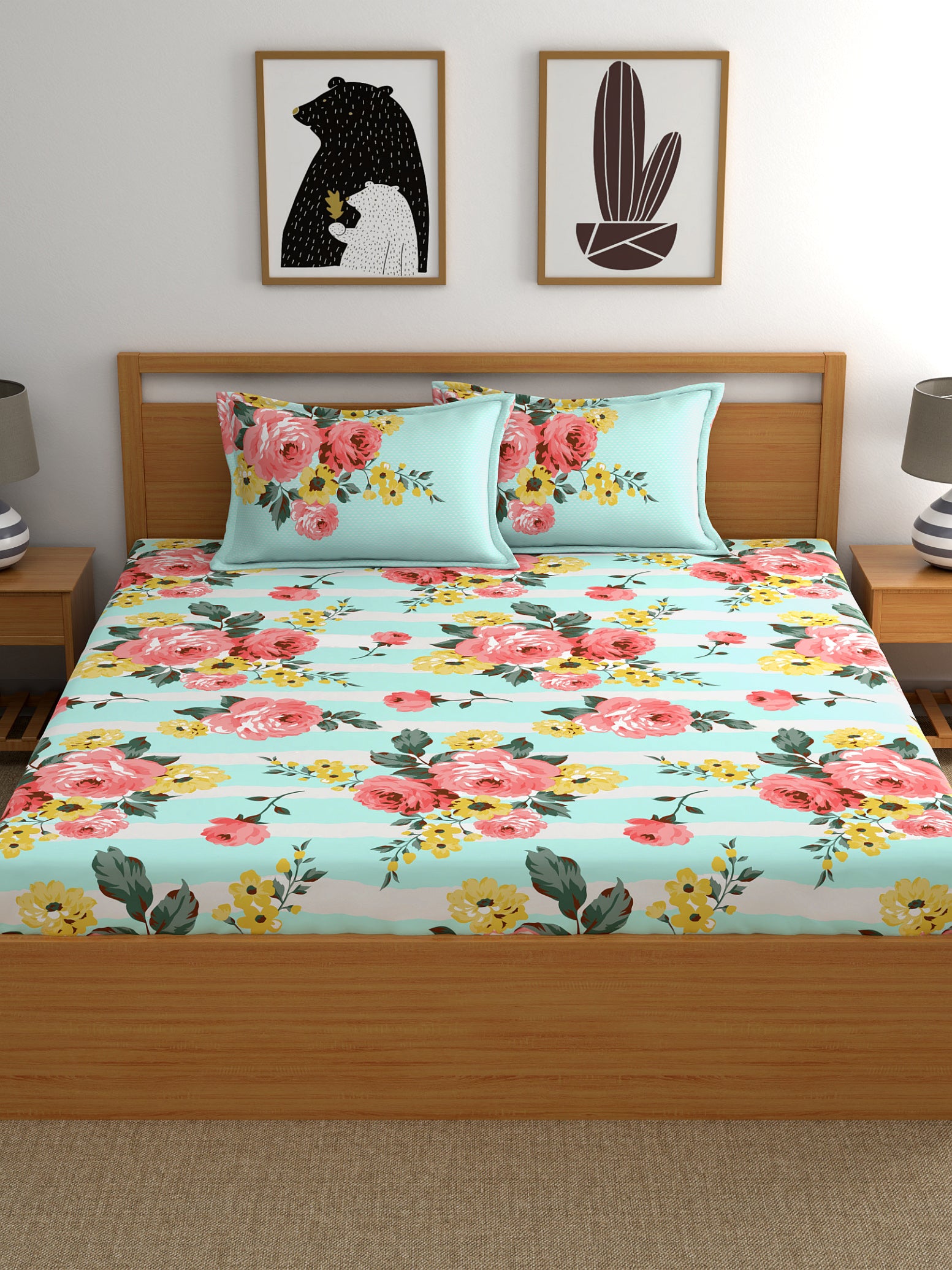 Home Ecstasy 100% Cotton Floral Bedsheet Set | 140 TC | Sea Green