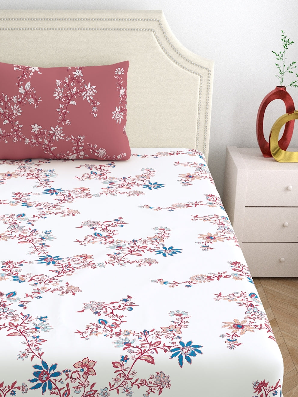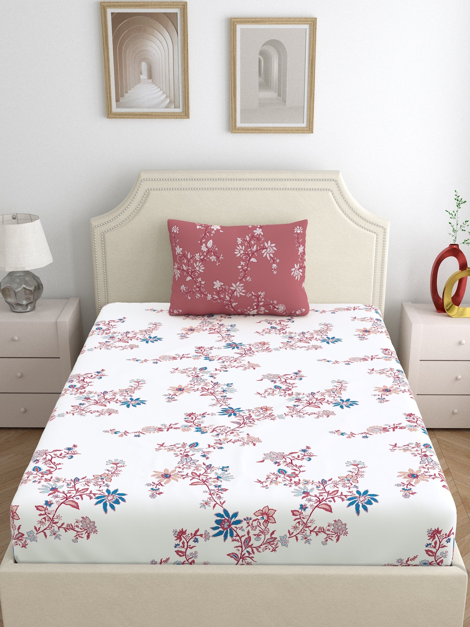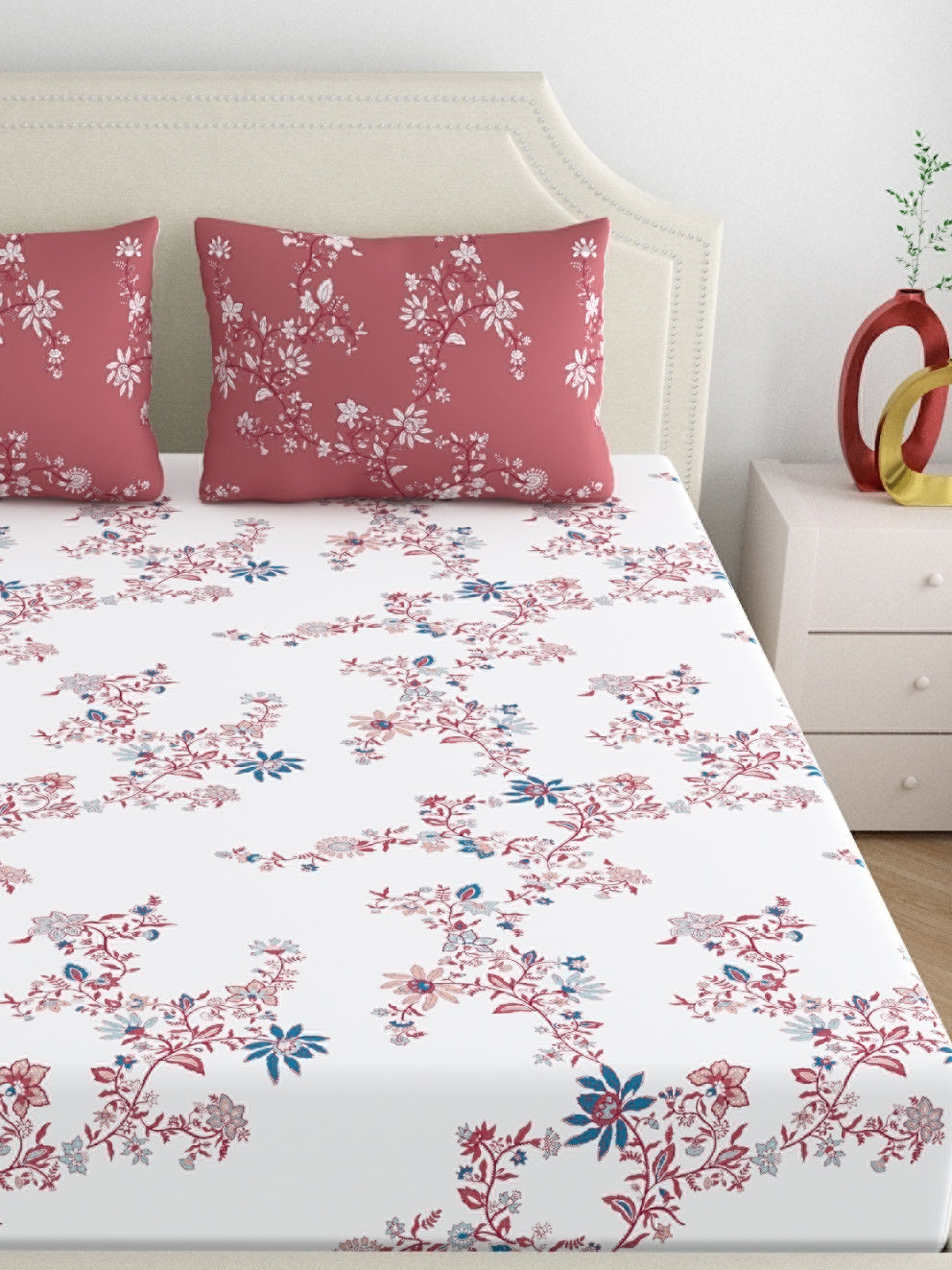 Home Ecstasy 100% Cotton Floral Bedsheets | 140 TC | Peach