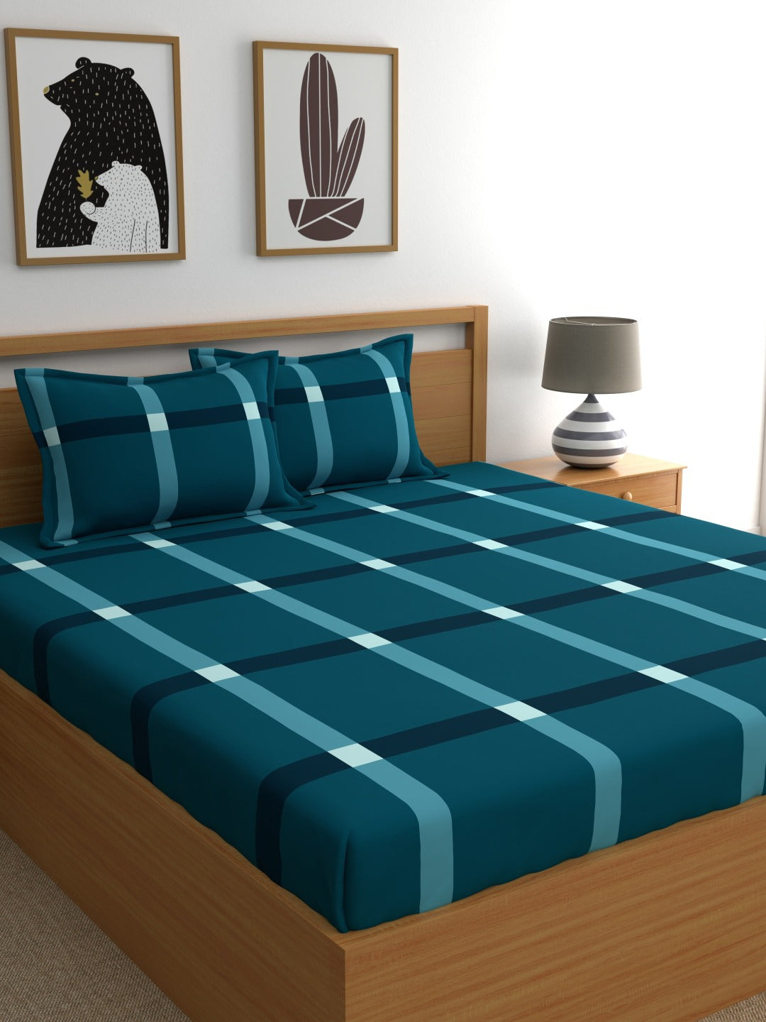 Home Ecstasy 100% Cotton Geometric Bedsheet Set | 140 TC | Teal Blue