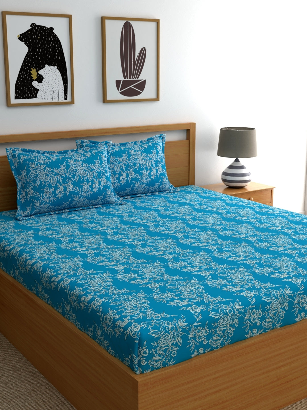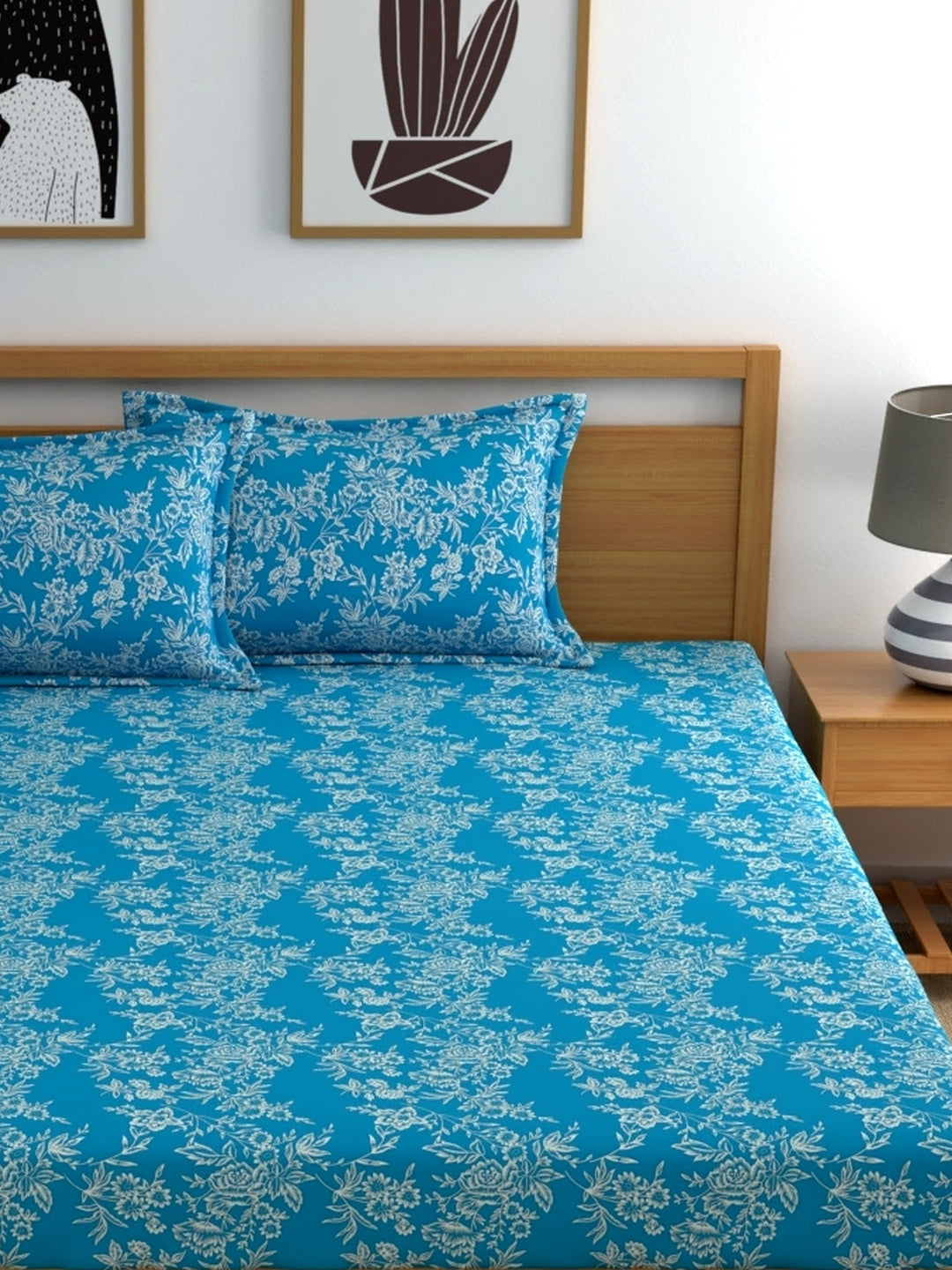 Home Ecstasy 100% Cotton Floral Bedsheet Set | 140 TC | Turqoise