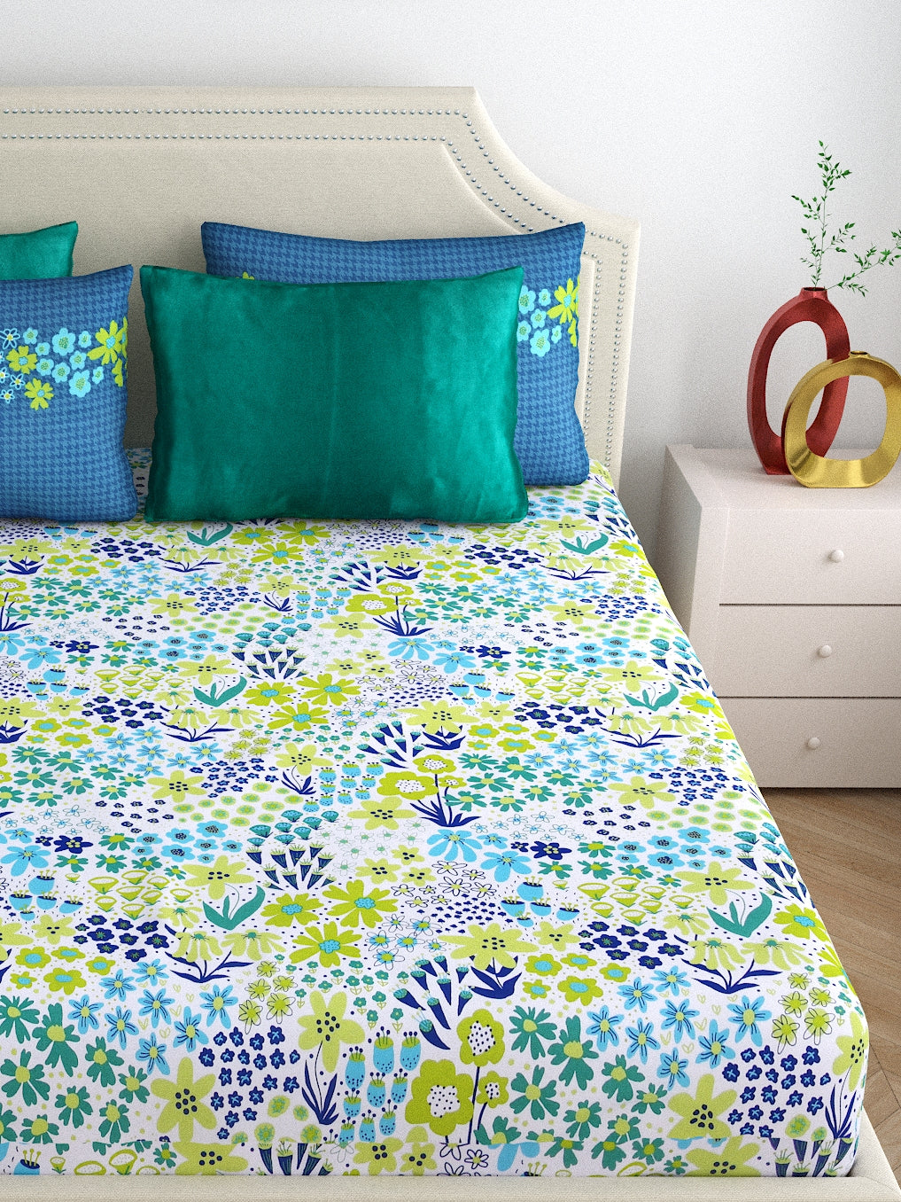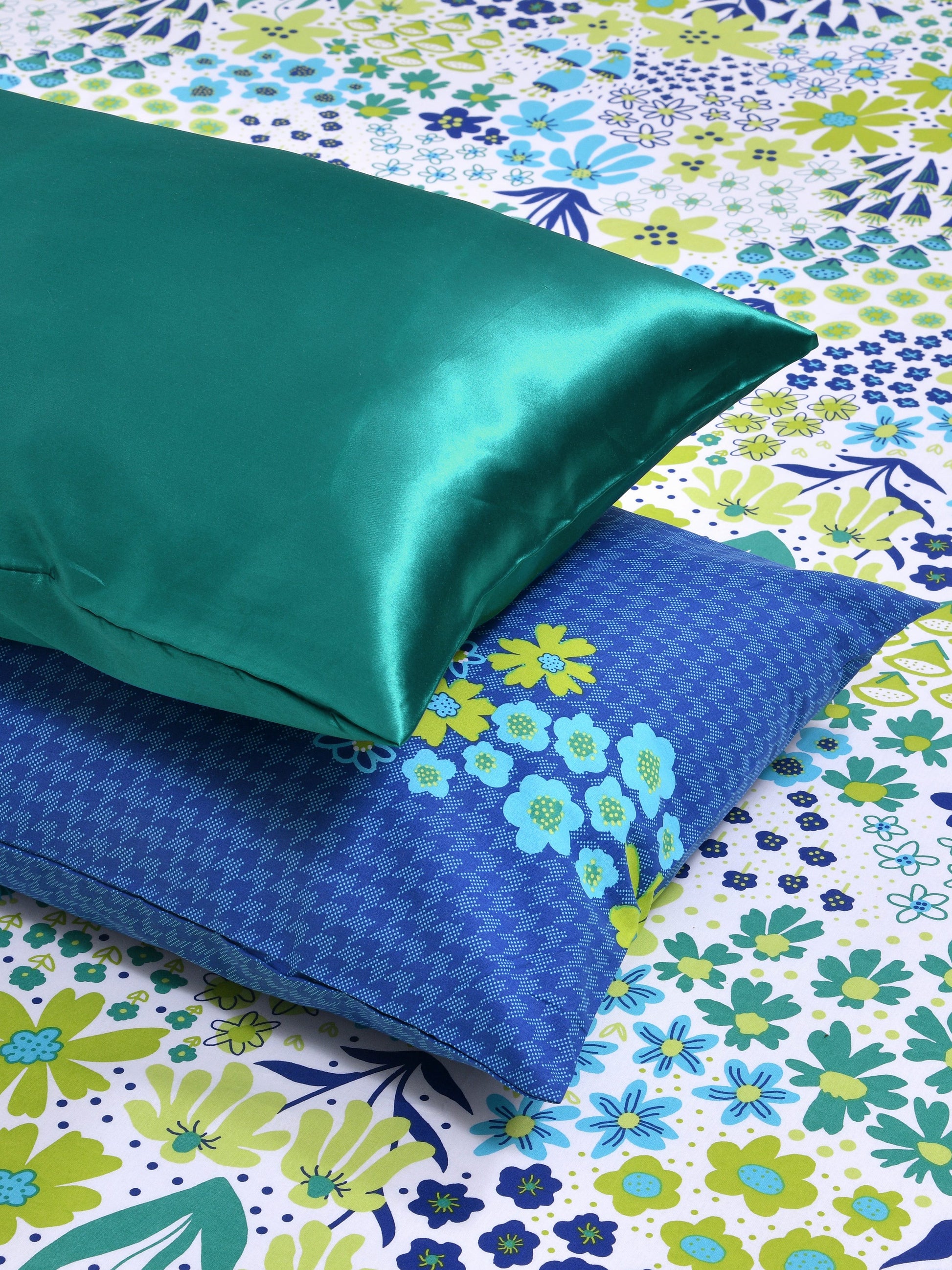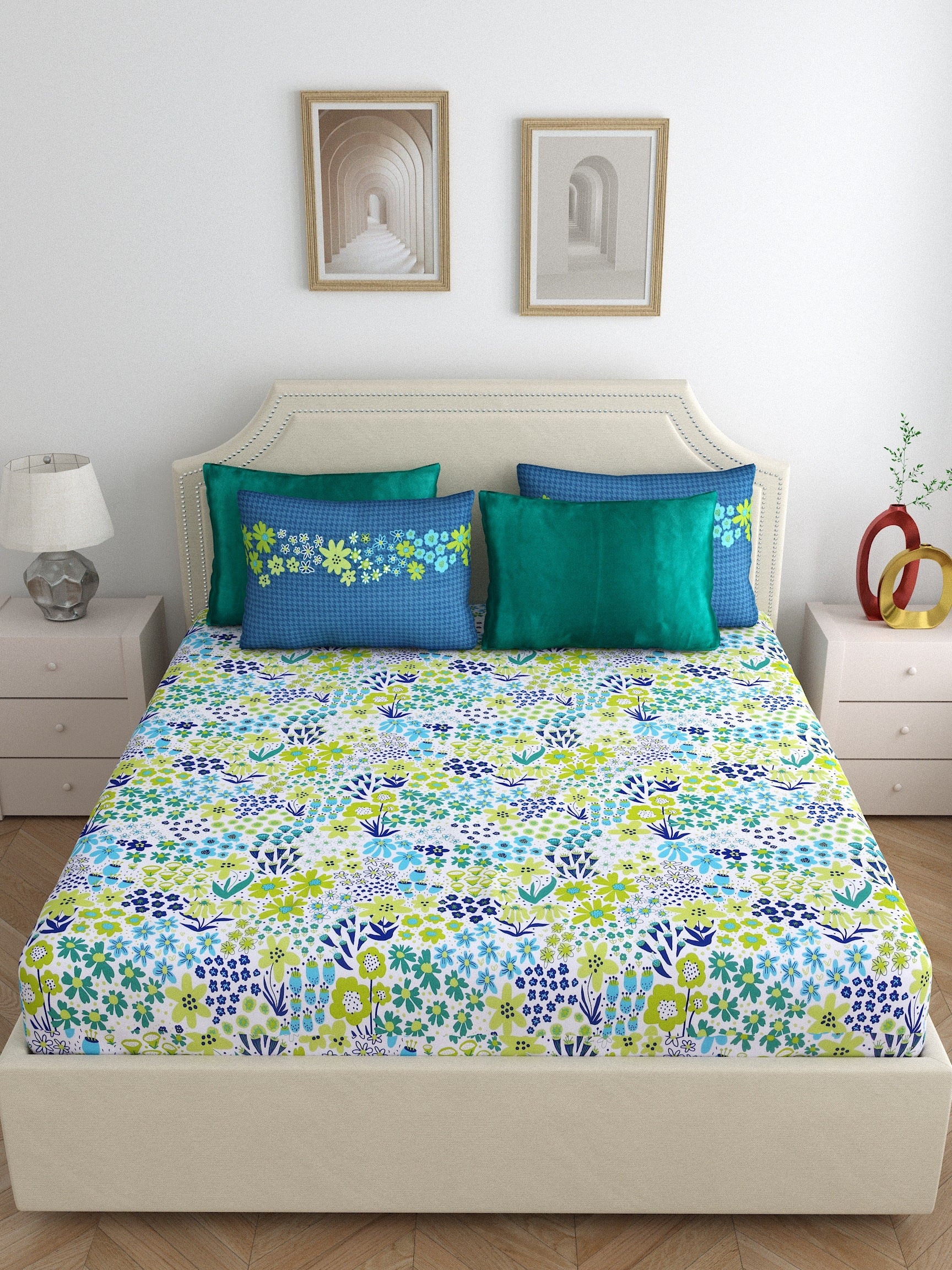 Home Ecstasy 100% Cotton Floral Bedsheet Set | 140 TC | Blue