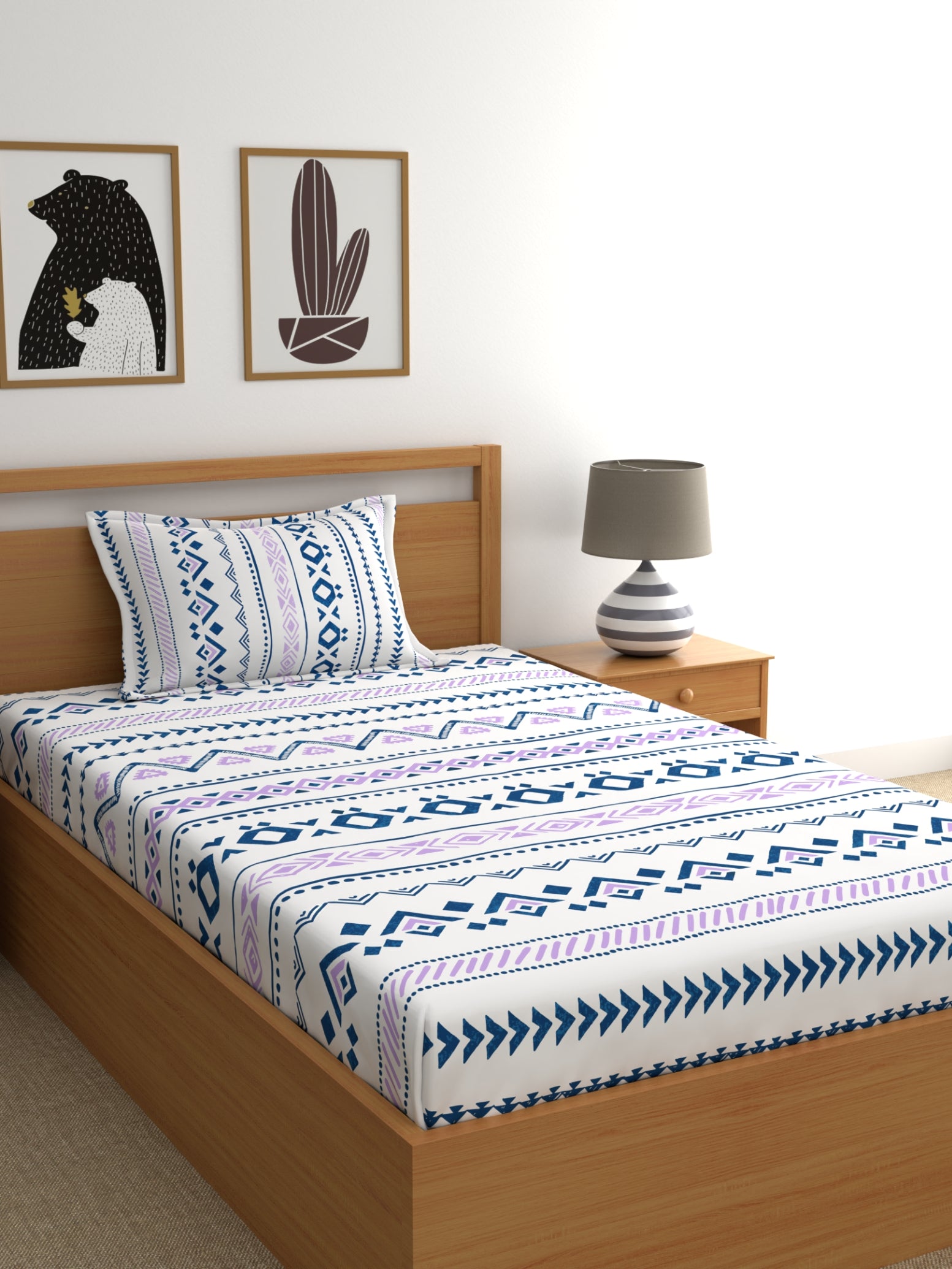 Home Ecstasy 100% Cotton Geometric Bedsheet Set | 140 TC | Purple