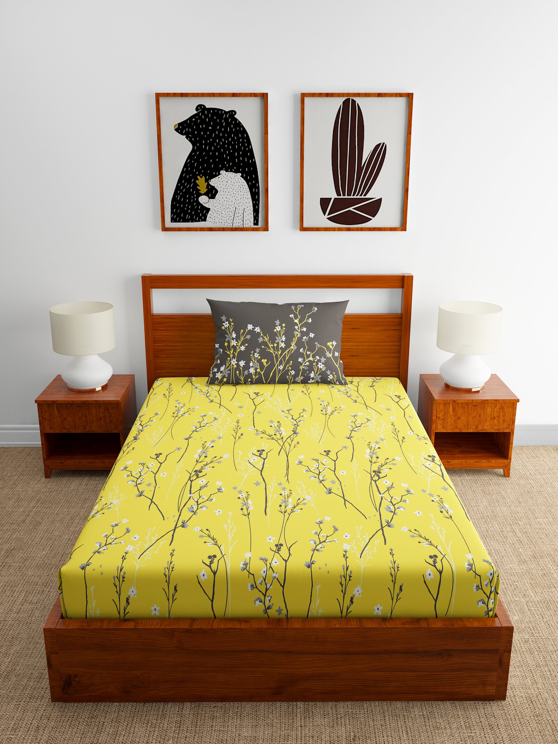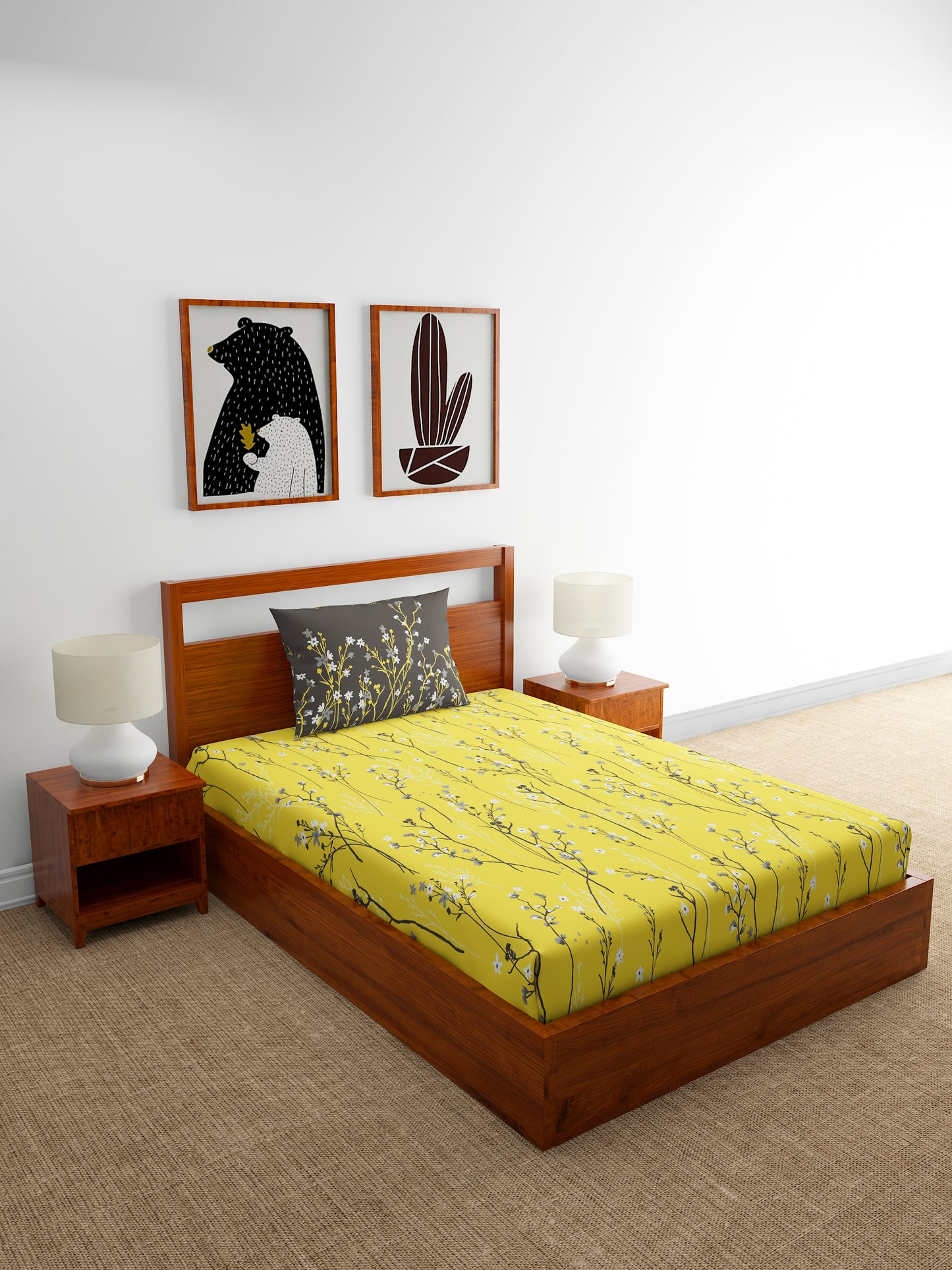 Home Ecstasy 100% Cotton Bedsheets, Premium | 140 TC | Yellow