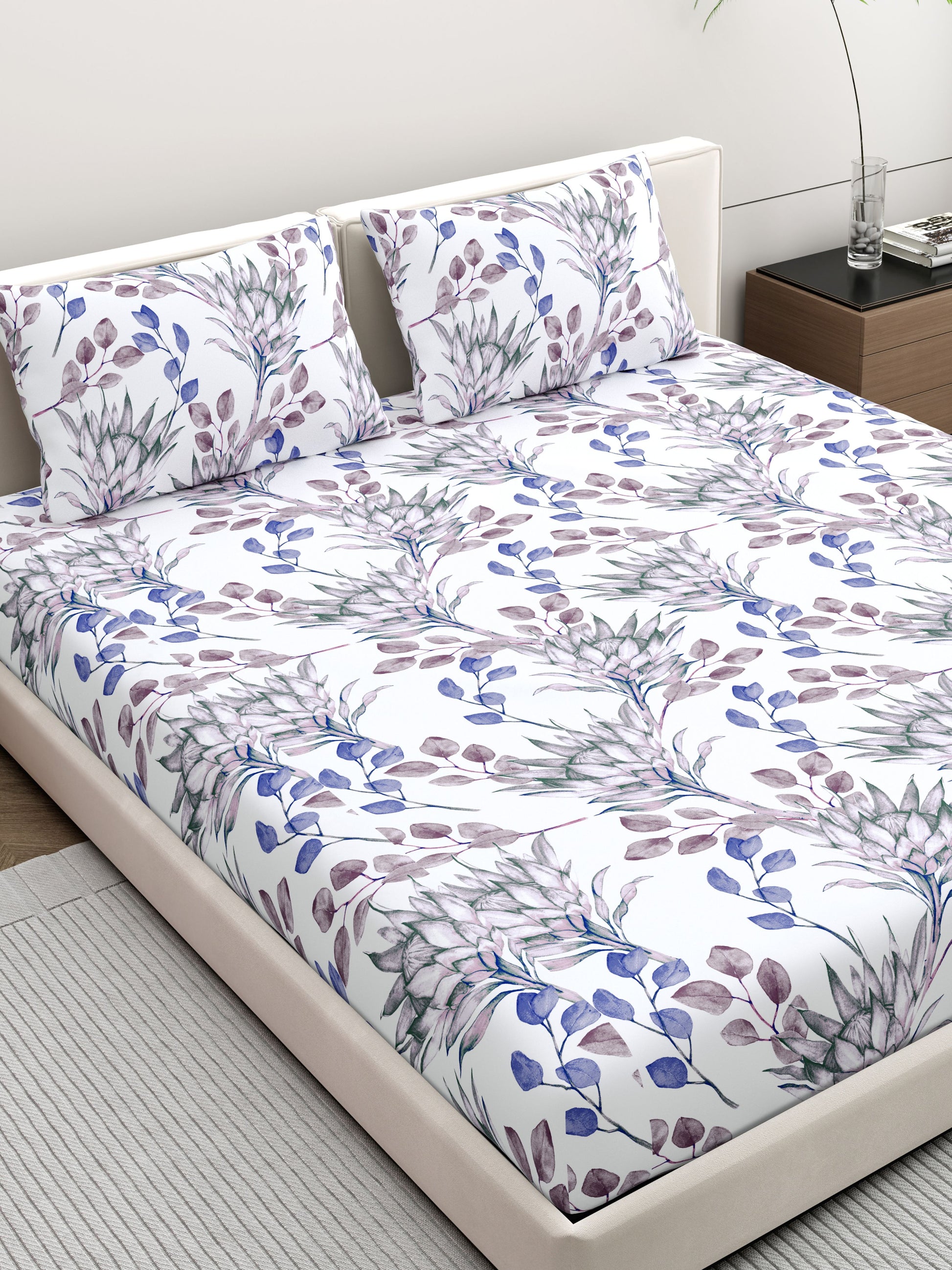 Home Ecstasy 100% Cotton Floral Bedsheet Set | 140 TC | Purple