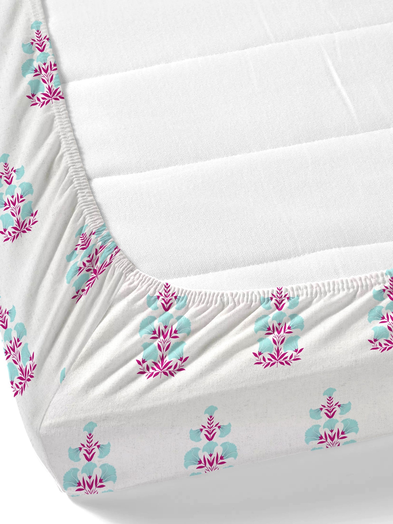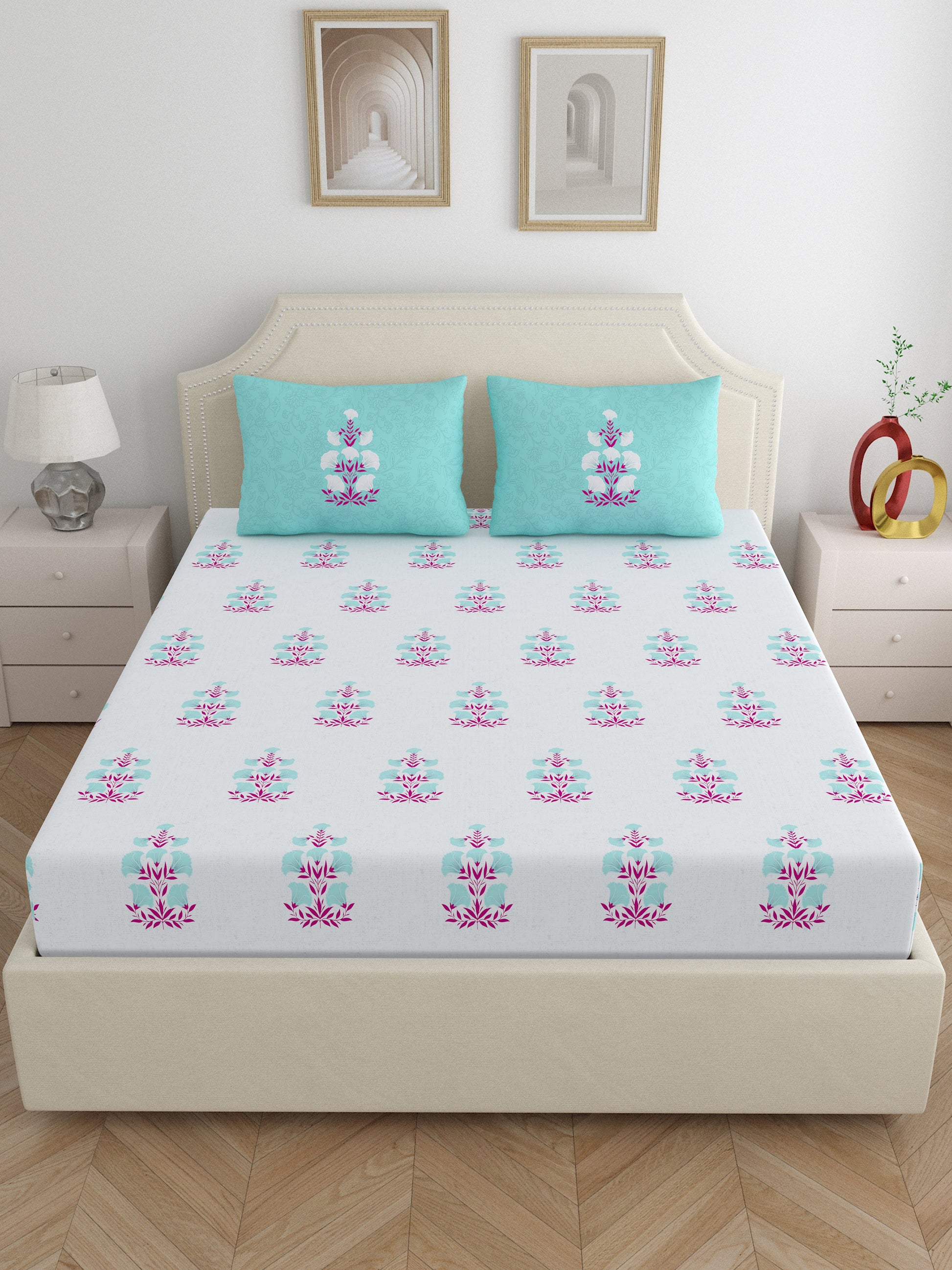 Home Ecstasy 100% Cotton Floral Bedsheet Set | 140 TC | T.Blue