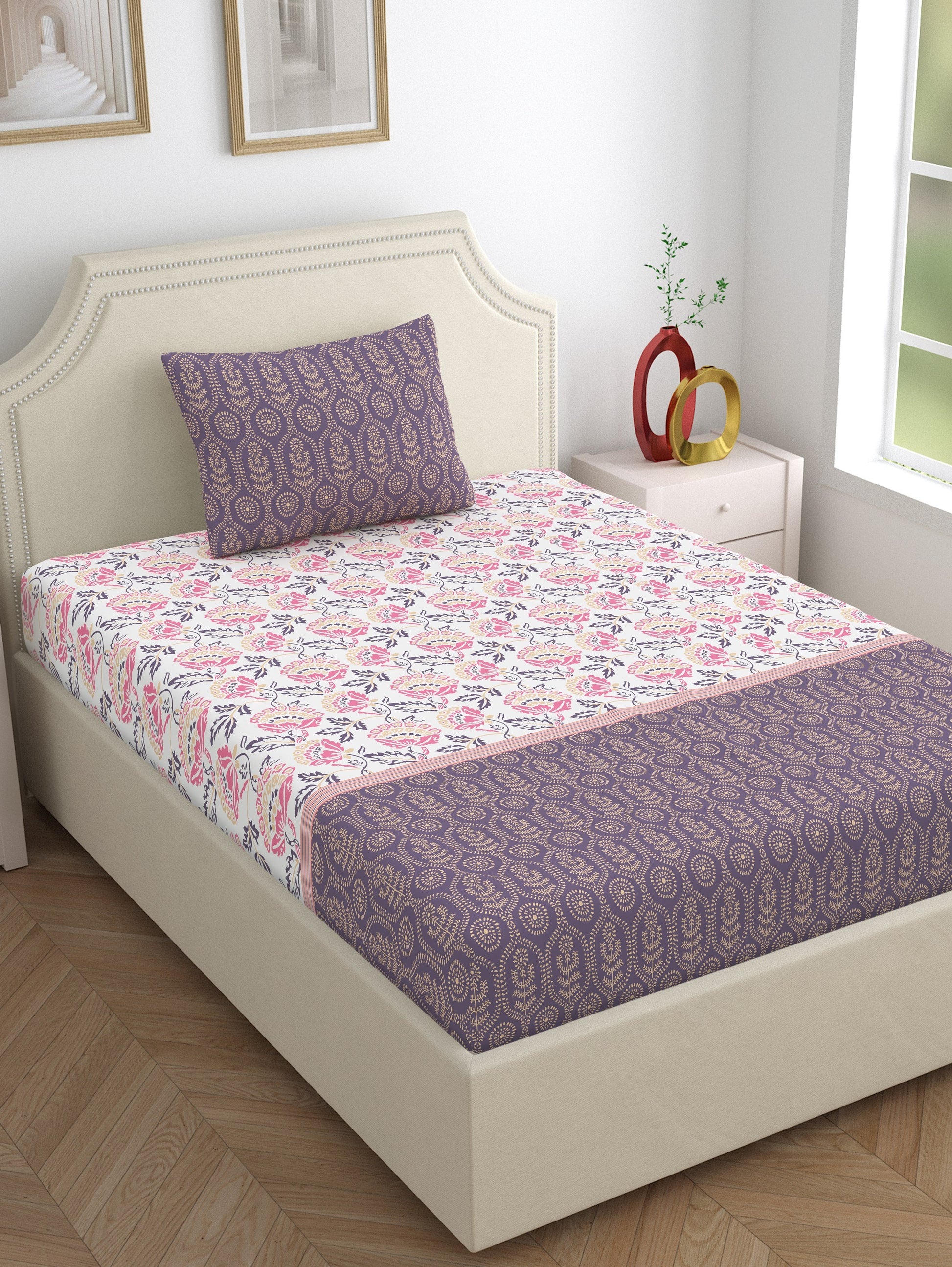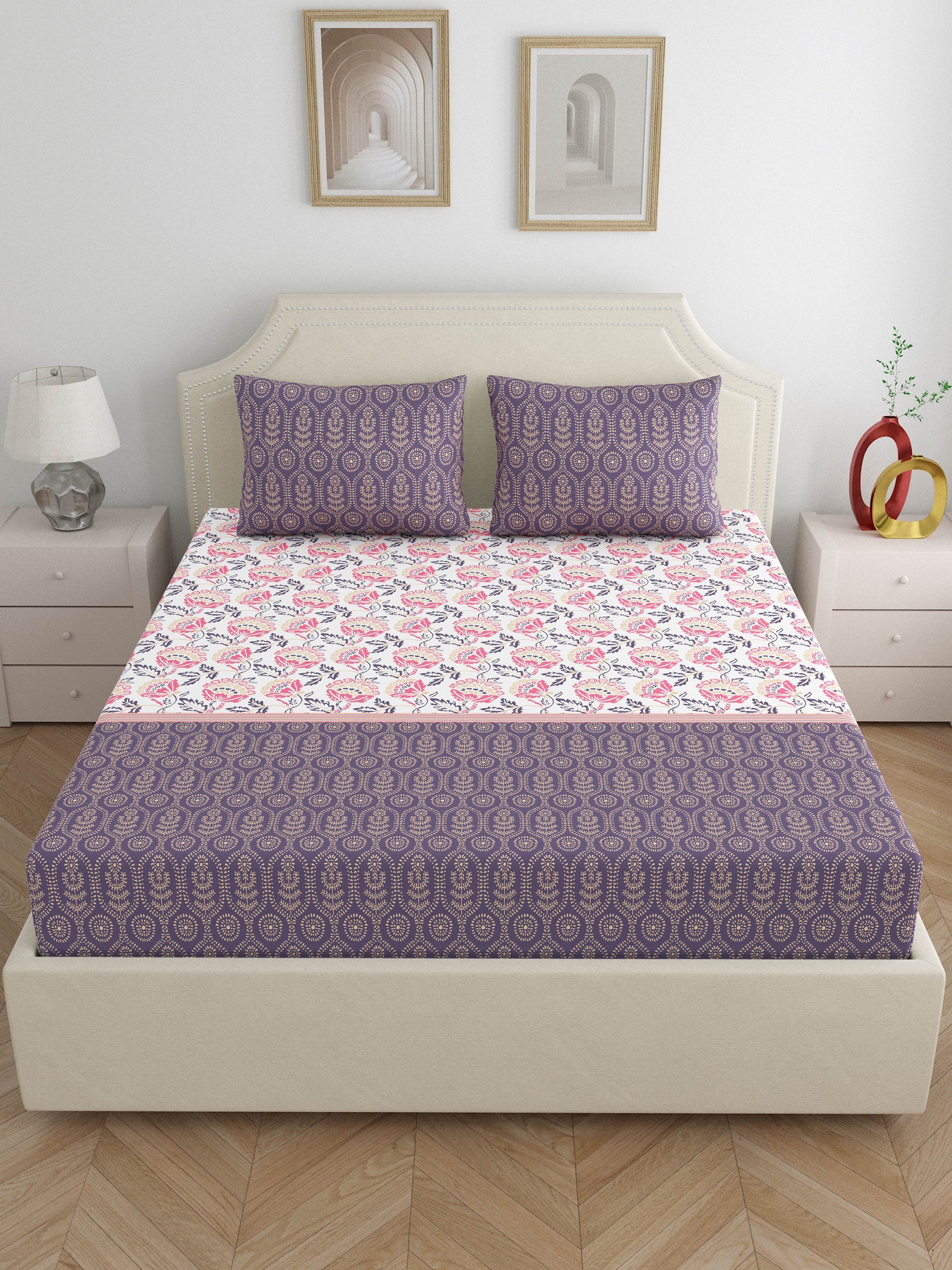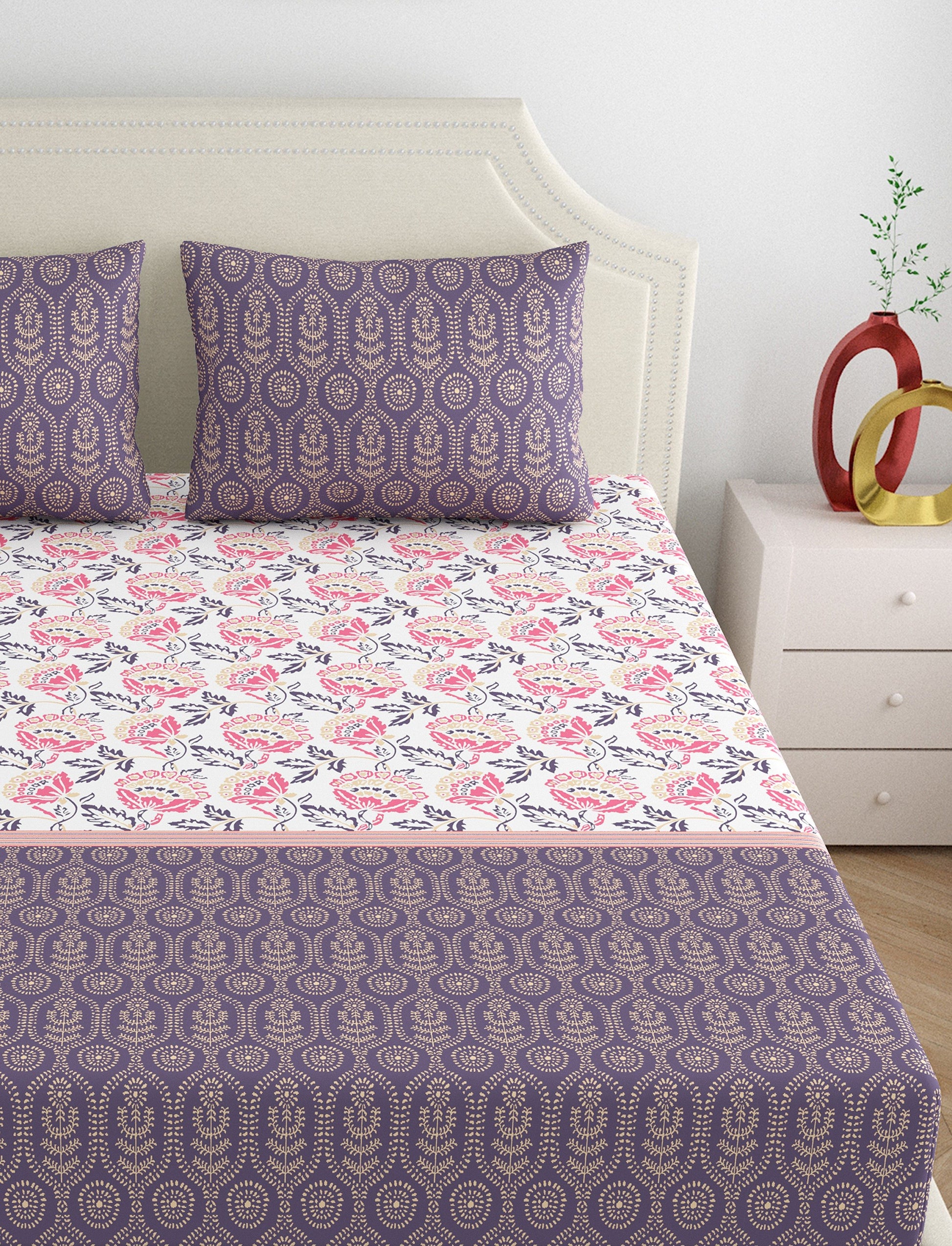 Home Ecstasy 100% Cotton Floral Bedsheet Set | 140 TC | Purple