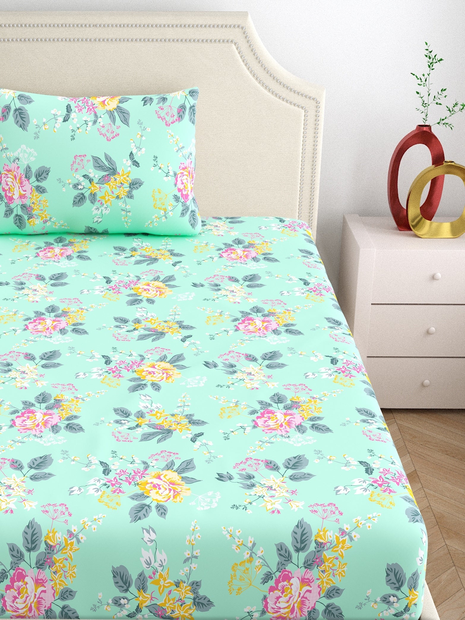 Home Ecstasy 100% Cotton Floral Bedsheet Set | 140 TC | Seagreen