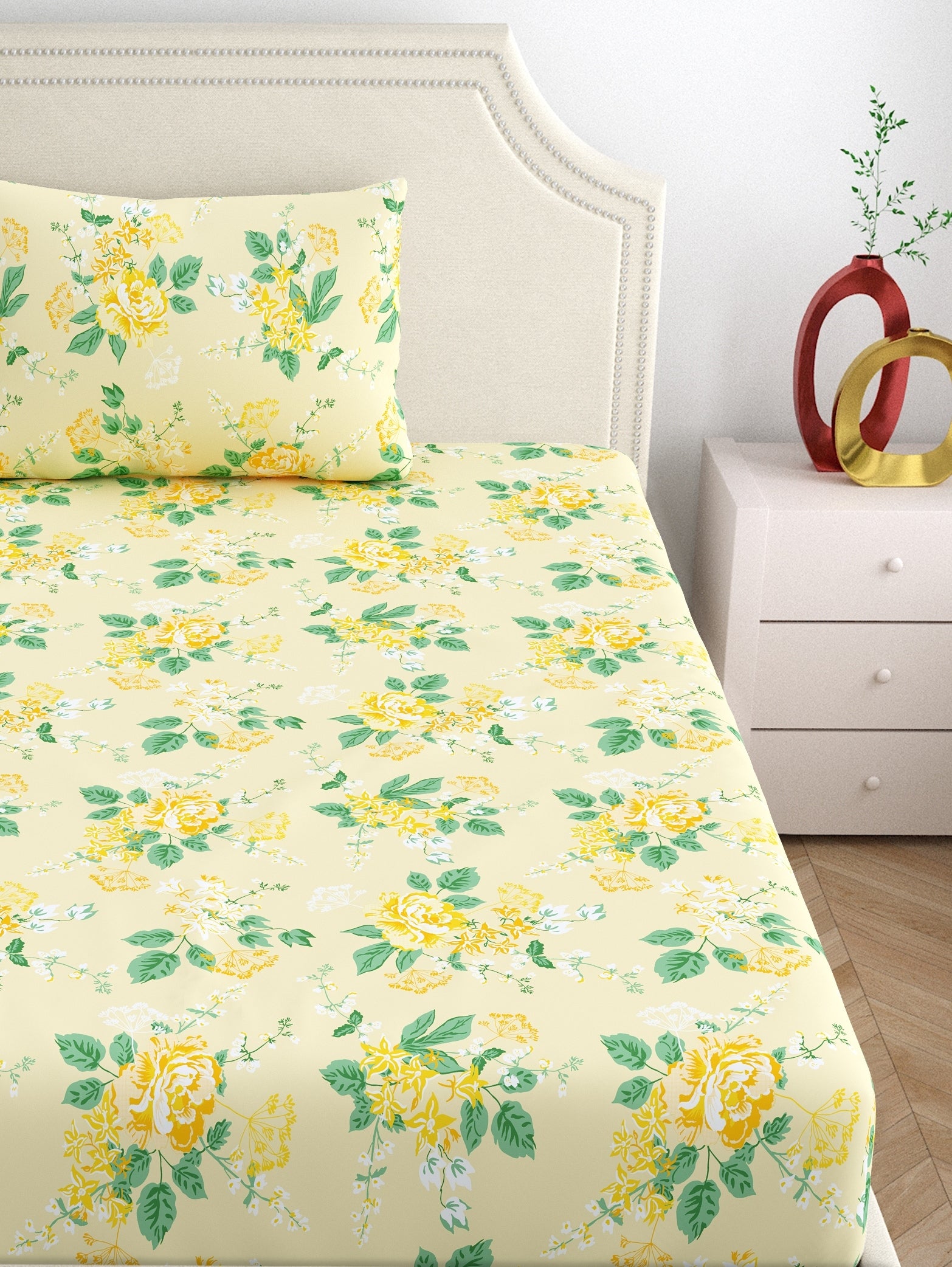 Home Ecstasy 100% Cotton Floral Bedsheet Set | 140 TC | Cream