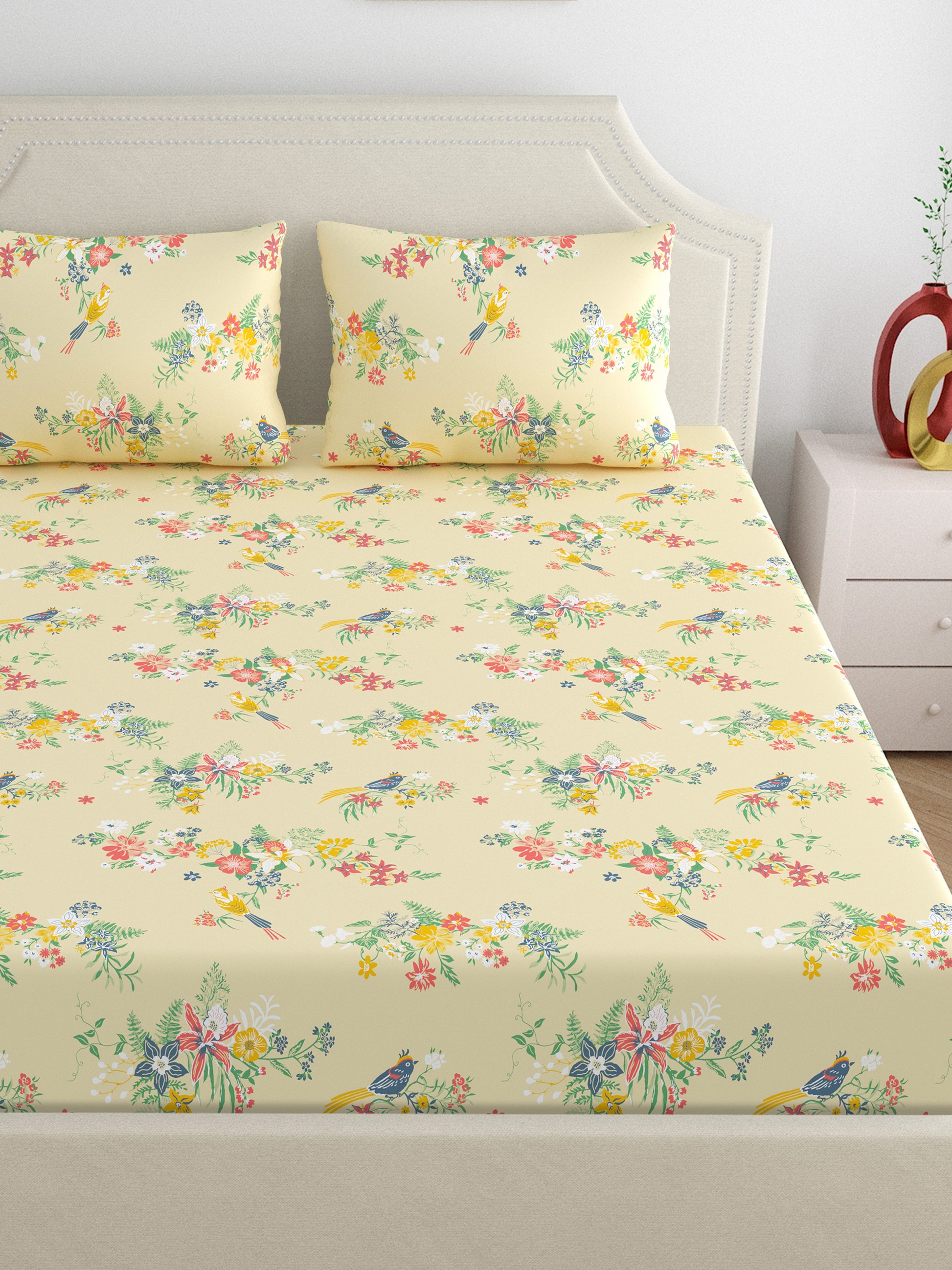 Home Ecstasy 100% Cotton Floral Bedsheet Set | 140 TC | Beige