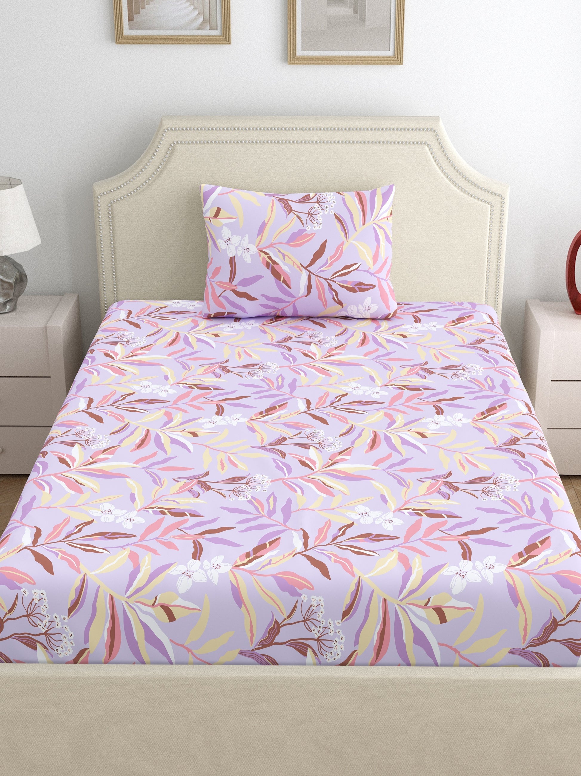Home Ecstasy 100% Cotton Floral Bedsheet Set | 140 TC | Purple