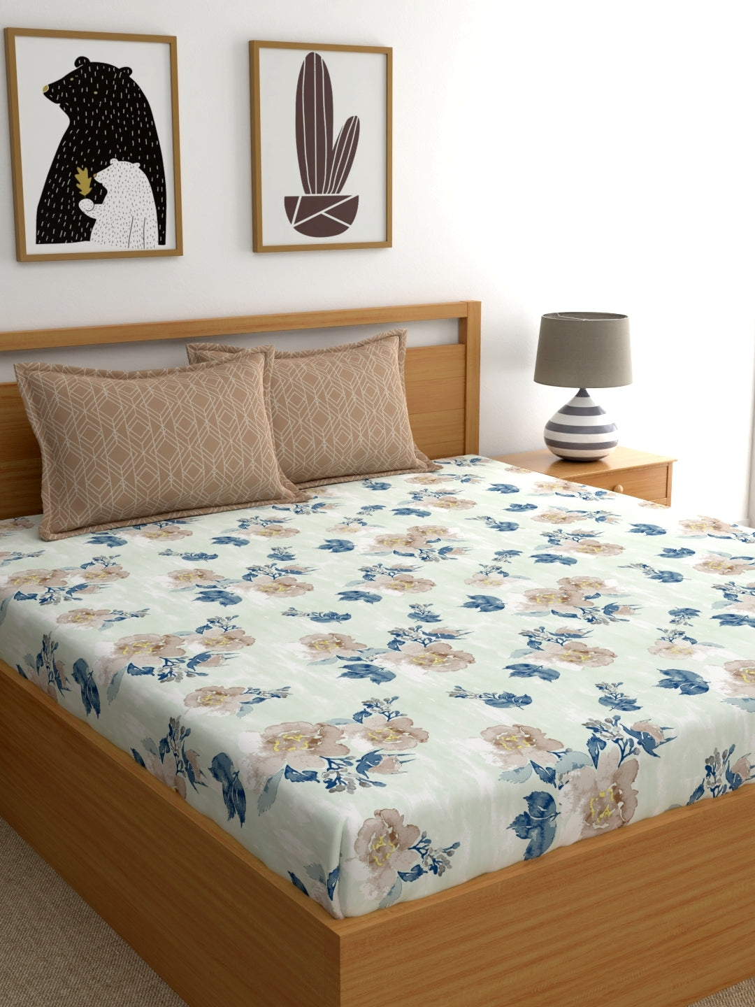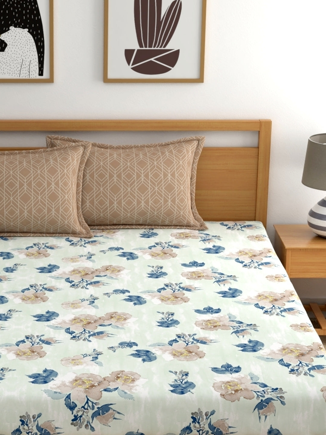 Home Ecstasy 100% Cotton | Floral Bedsheet Set | 140 TC | Brown