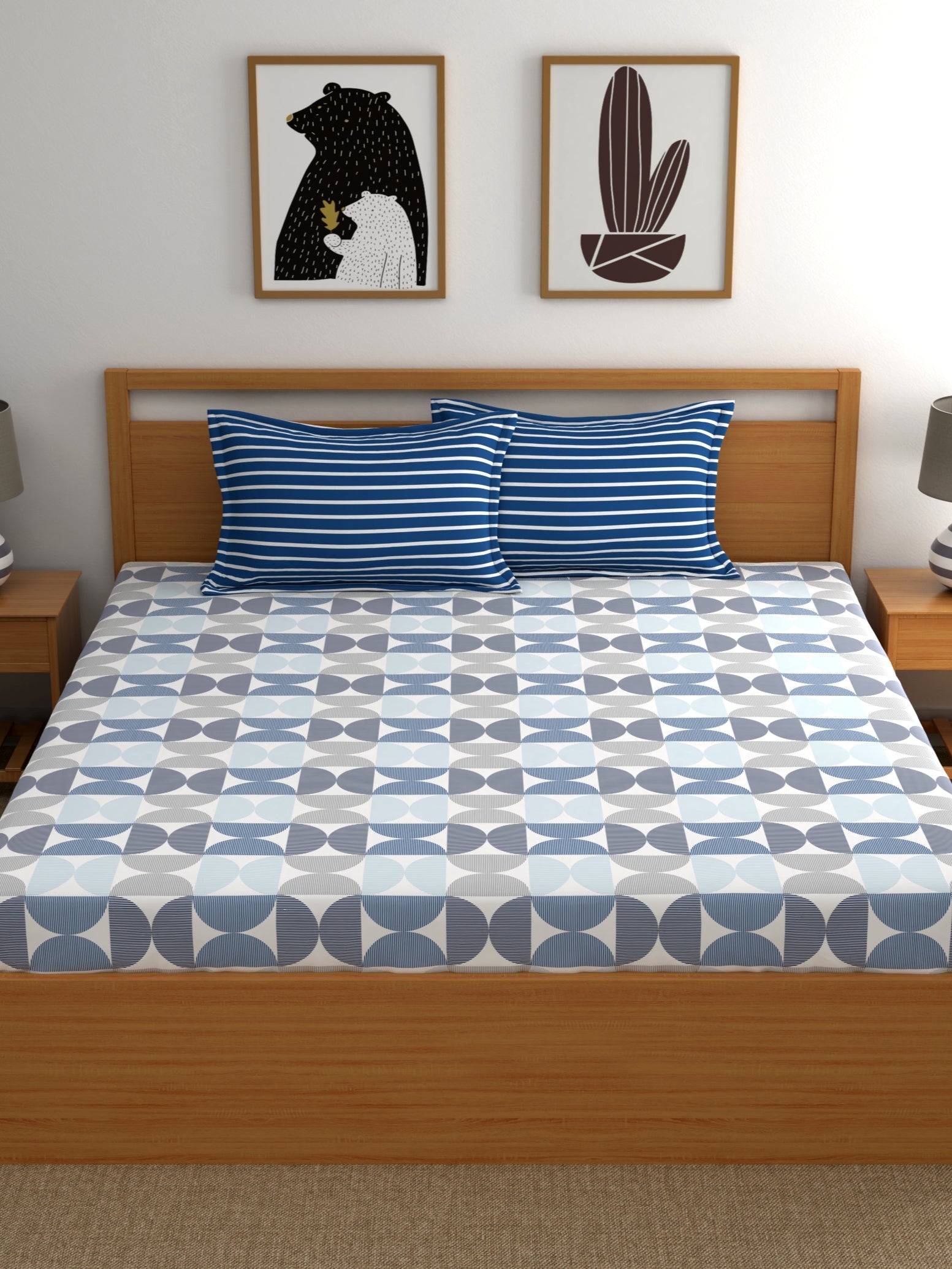 Home Ecstasy 100% Cotton Abstract Bedsheet Set | 180 TC | Blue