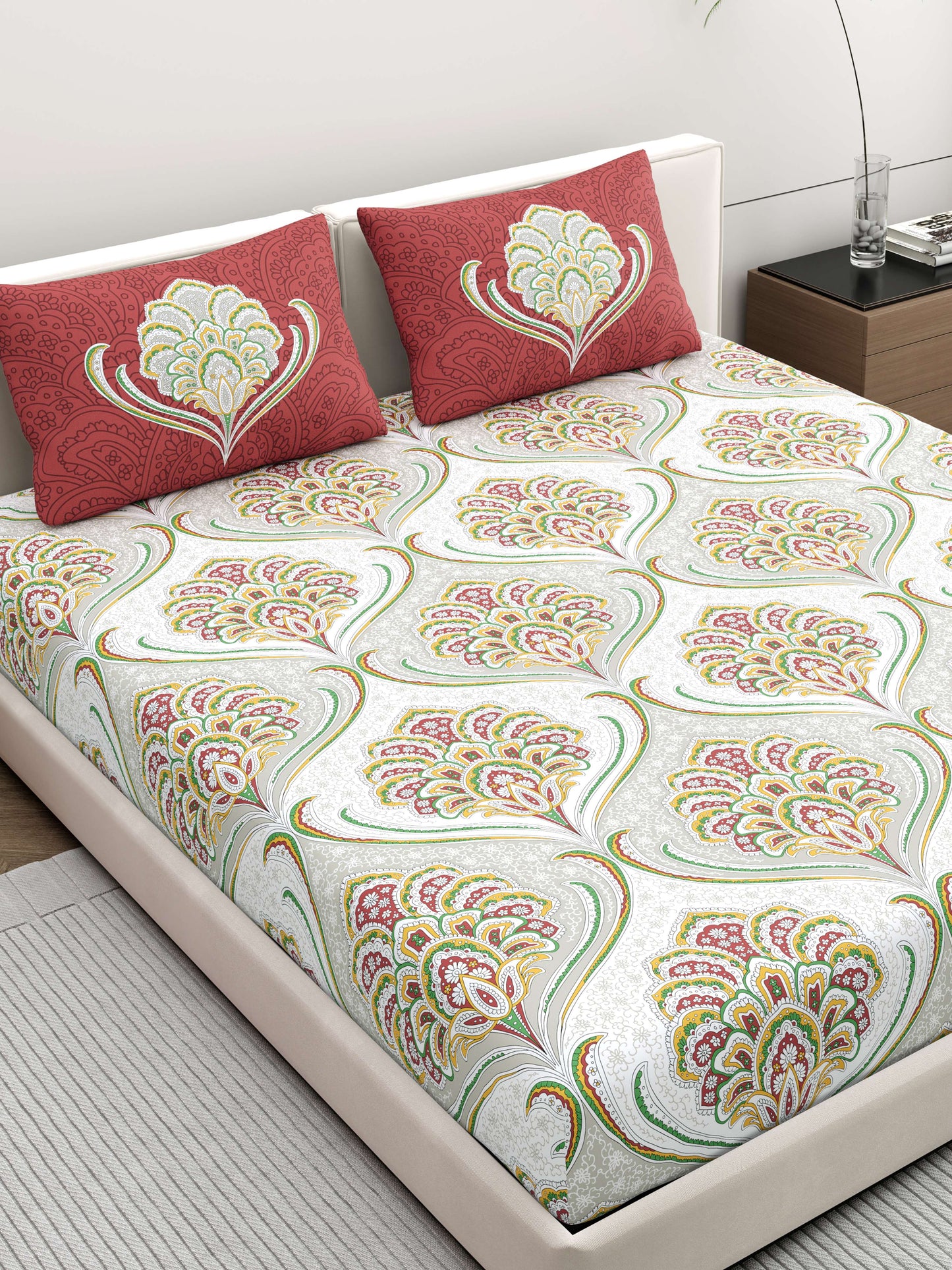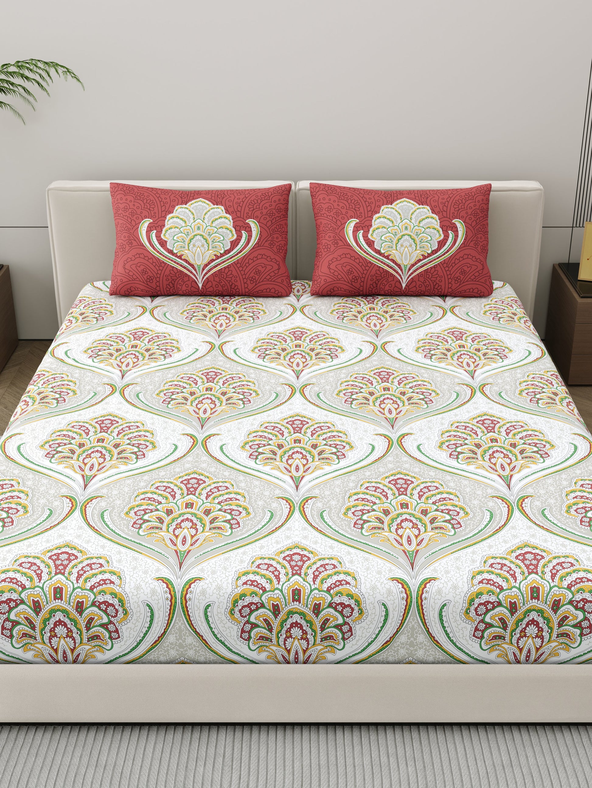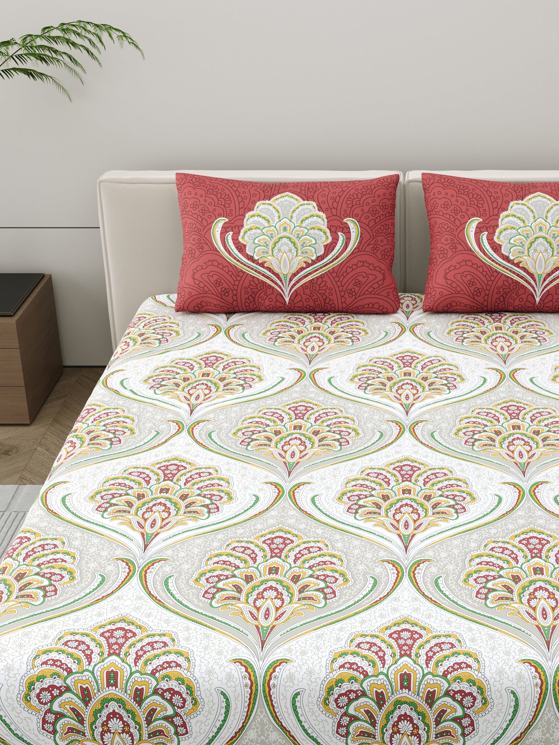 Dreamscape 100% Cotton Ethnic Bedsheet Set | 200 TC | Red