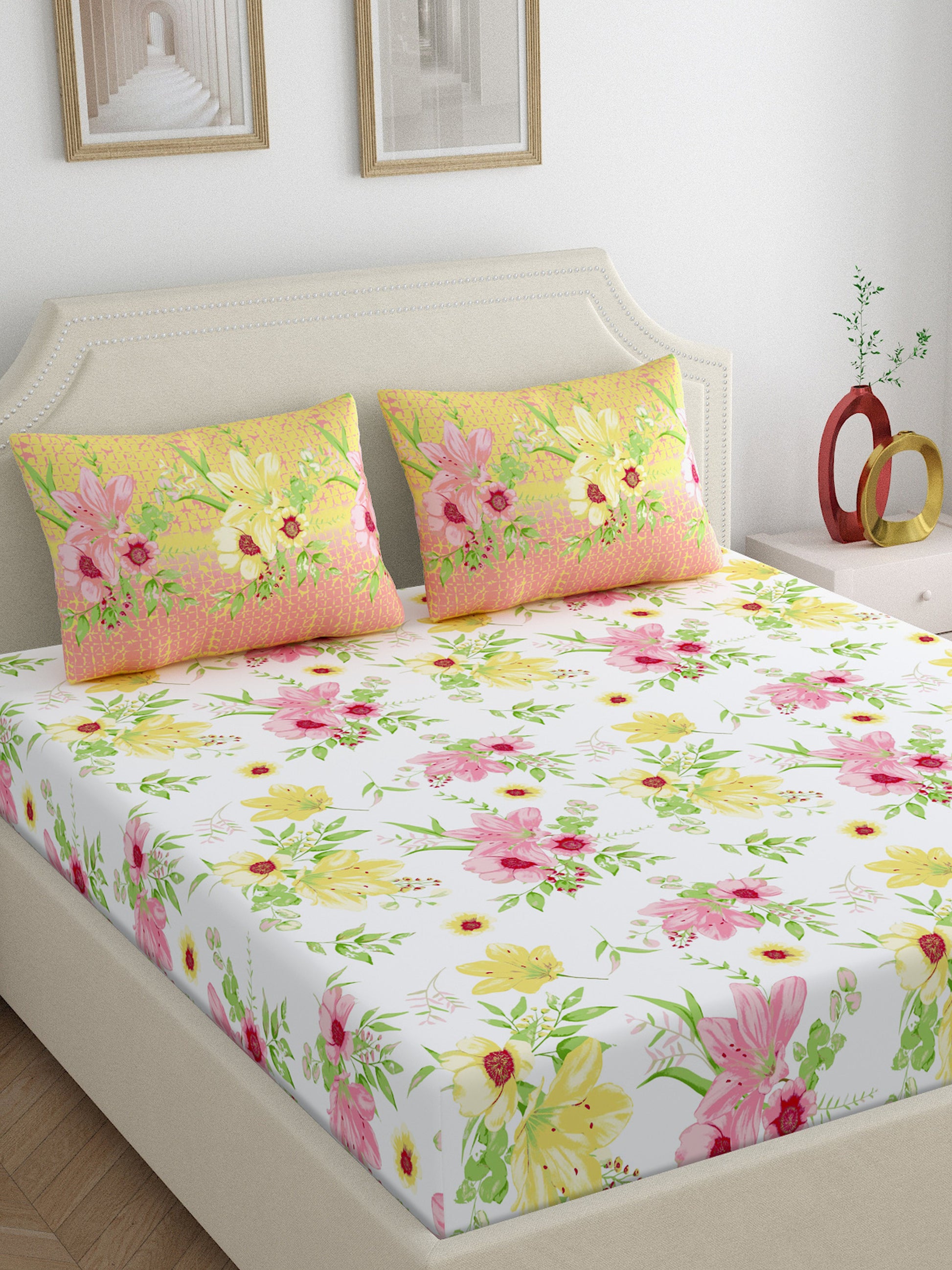 Home Ecstasy 100% Cotton | Floral Bedsheet Set | 300 TC | Pink