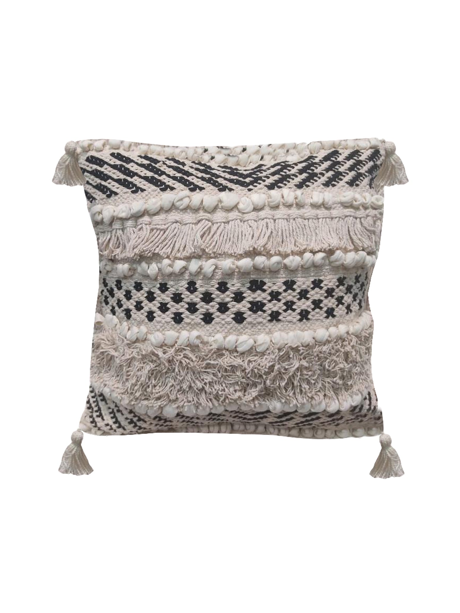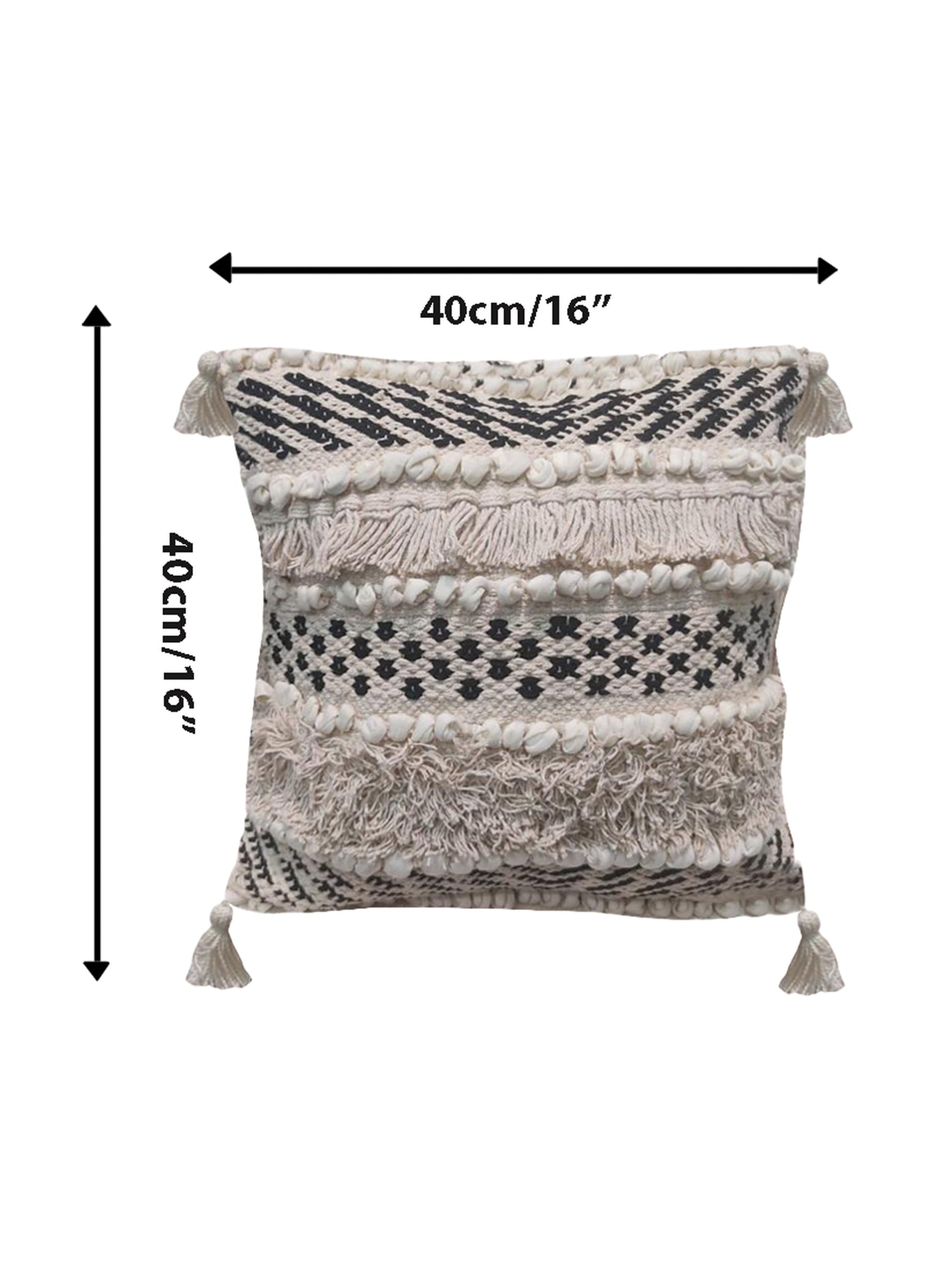 Home Ecstasy 100% Cotton Embroidered Beige And Black Cushion Cover 16"x16" (Set of 2) | 140 TC | Beige & Black