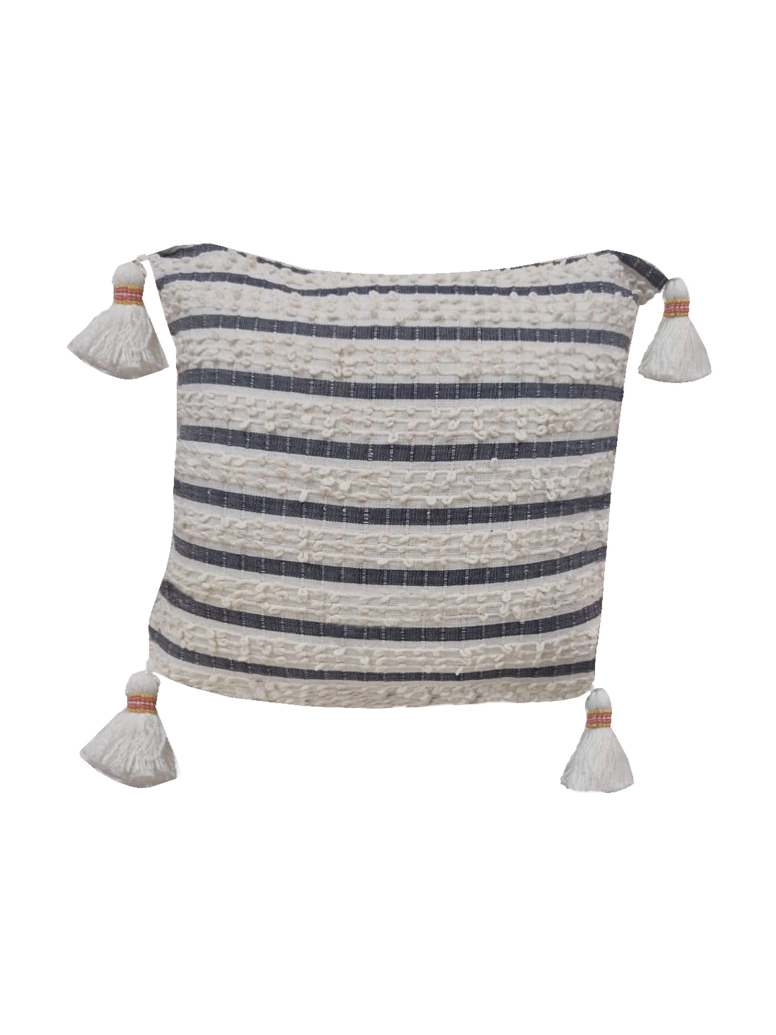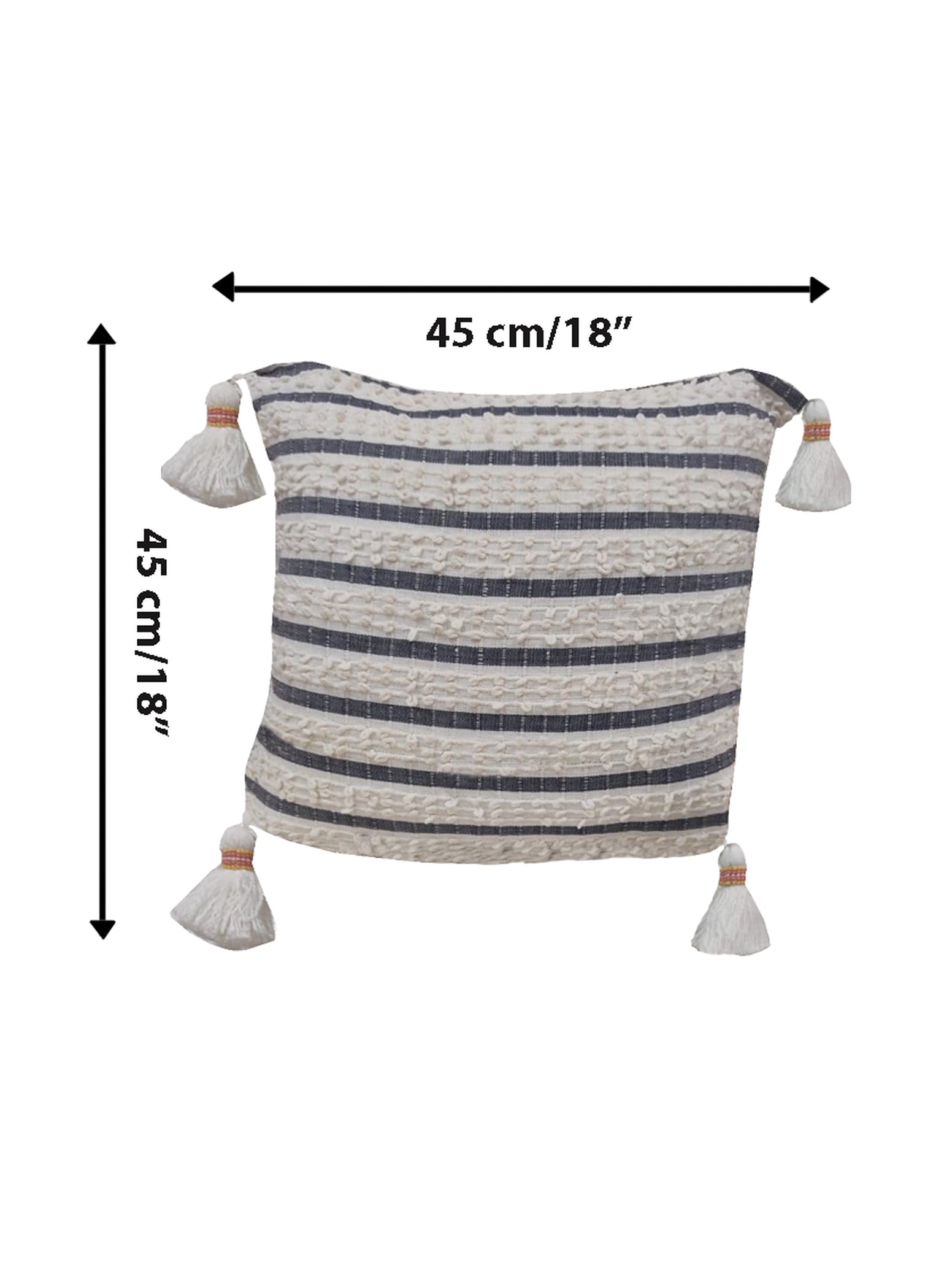 Home Ecstasy 100% Cotton Embroidered Ivory And Blue Cushion Cover 18"x18" (Set of 2) | 140 TC | Ivory & Blue
