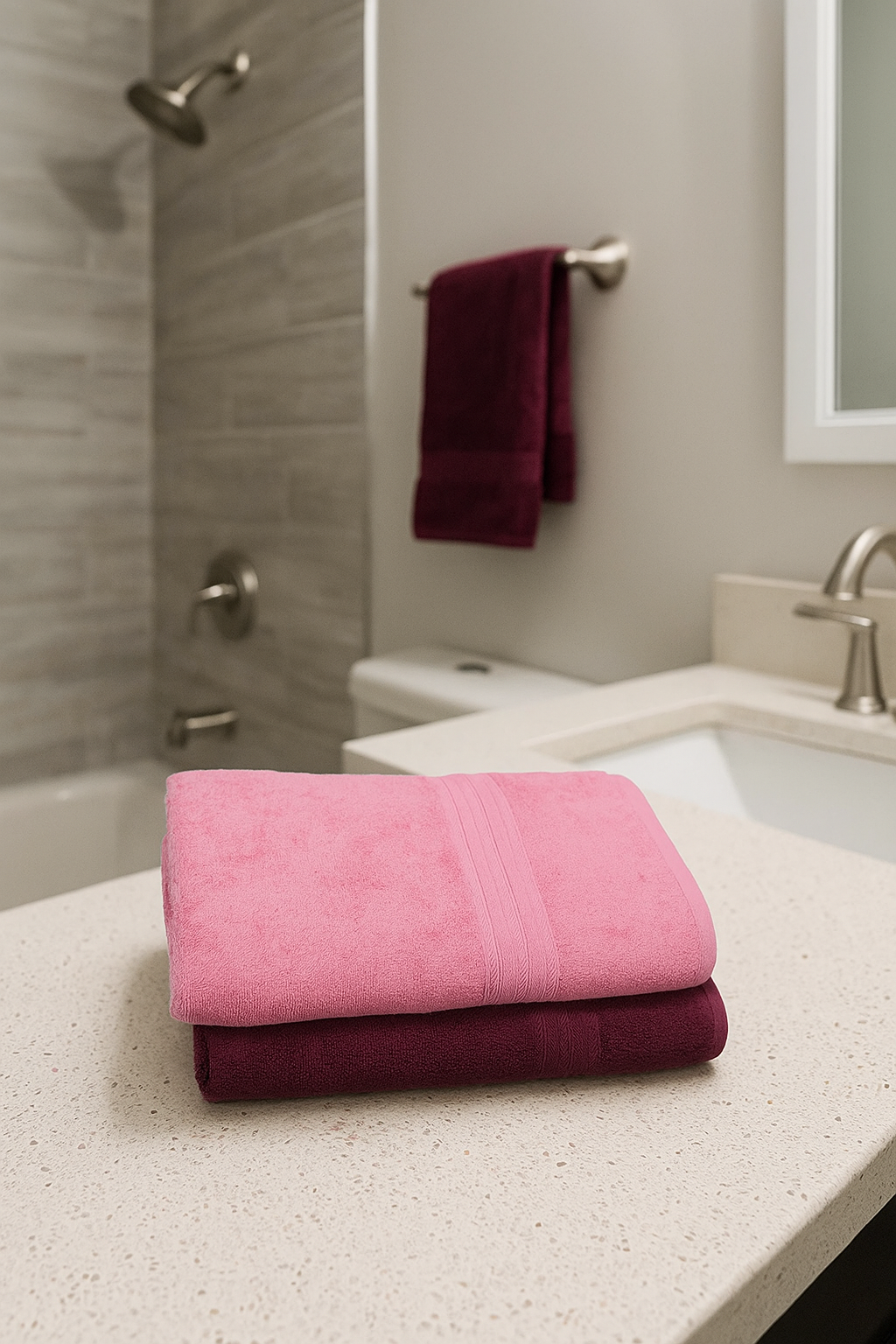 Dreamscape 100% Cotton 550 GSM Bath Towel Set of 2 | Burgundy & Rose