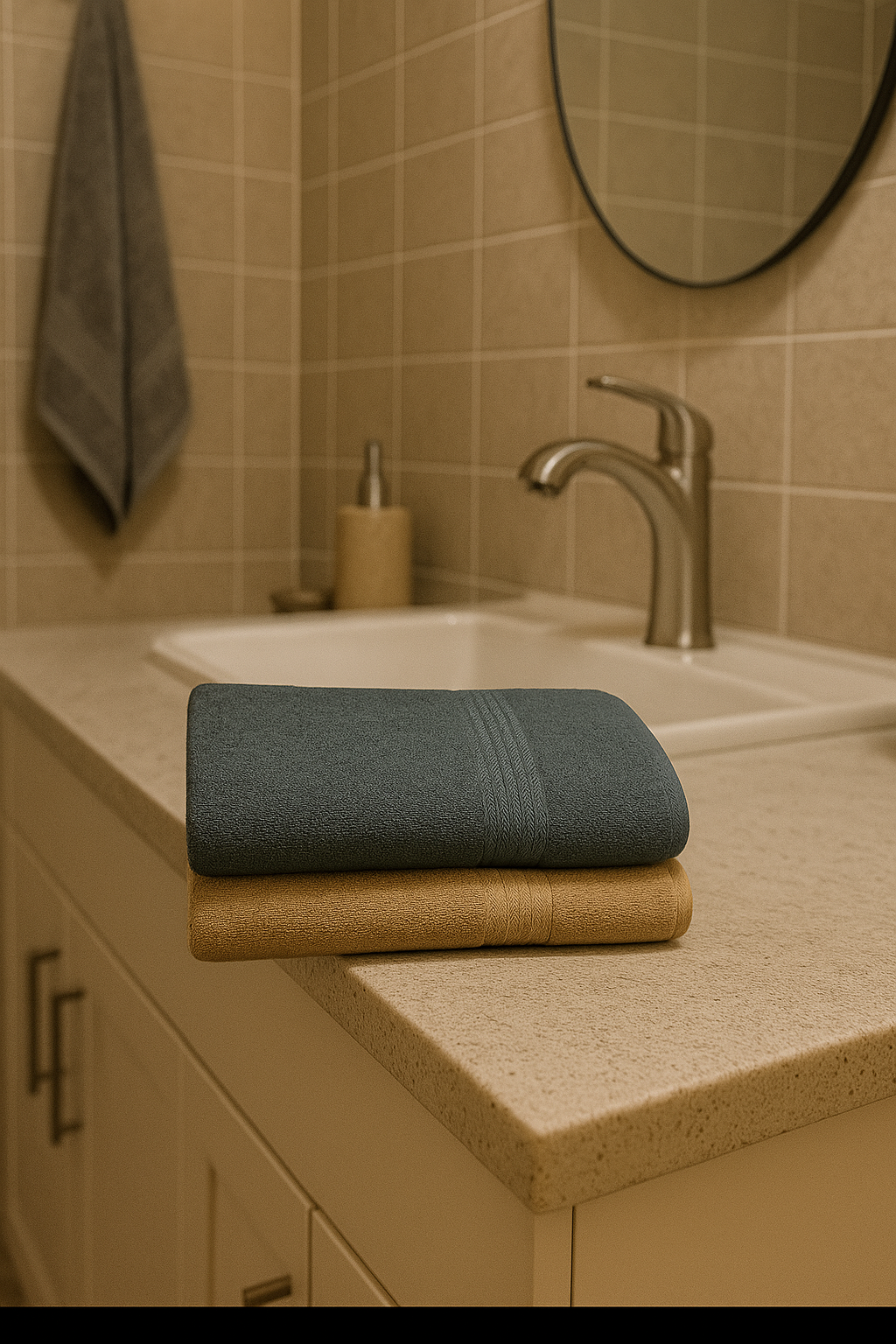 Dreamscape 100% Cotton 550 GSM Bath Towel Set of 2 | Light Grey & Beige