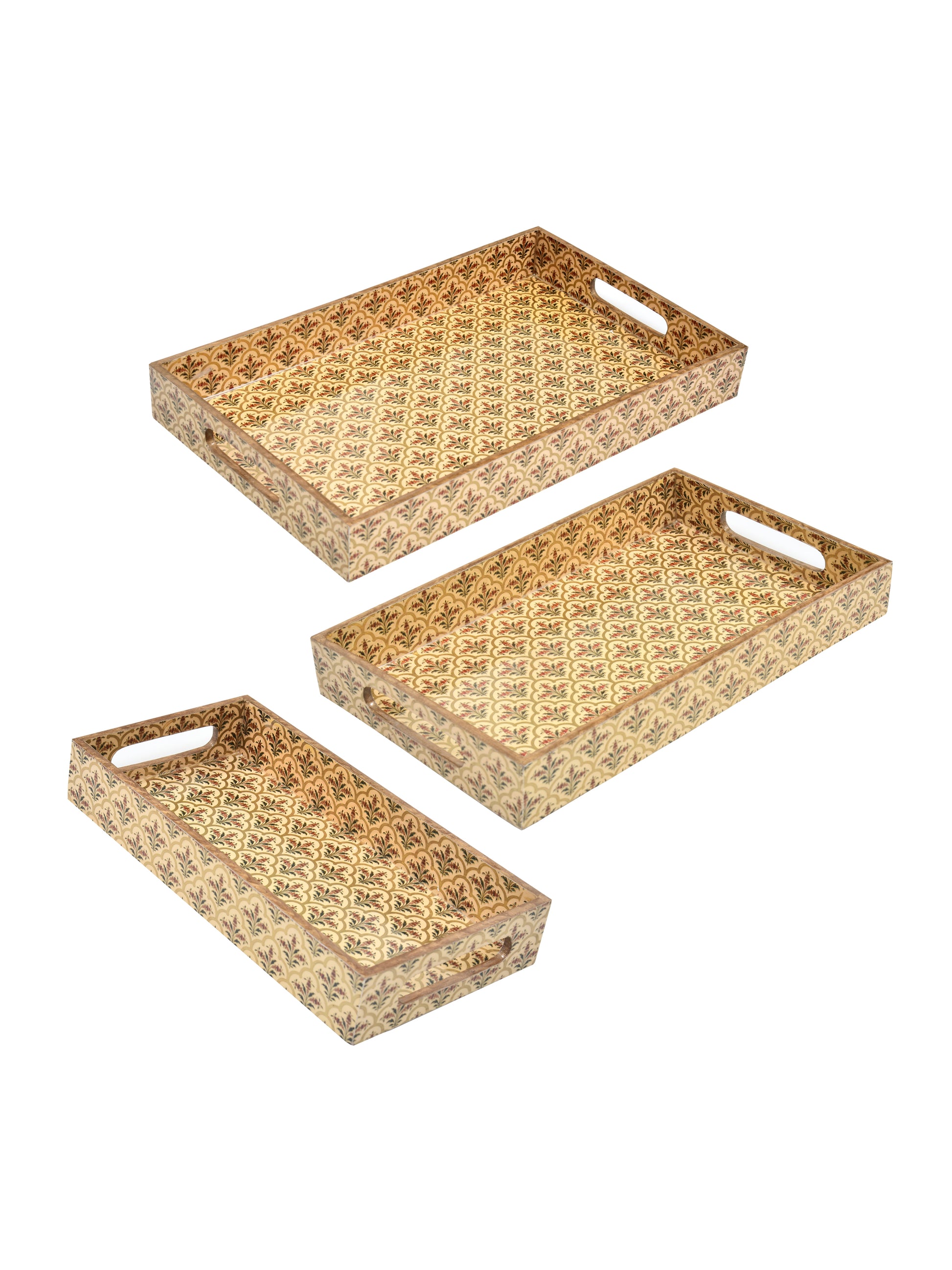 - SET OF 3 VERSATILE TRAYS: This Home Ecstasy tray set includes three beautifully crafted rectangular MDF wood trays with print & enamel.