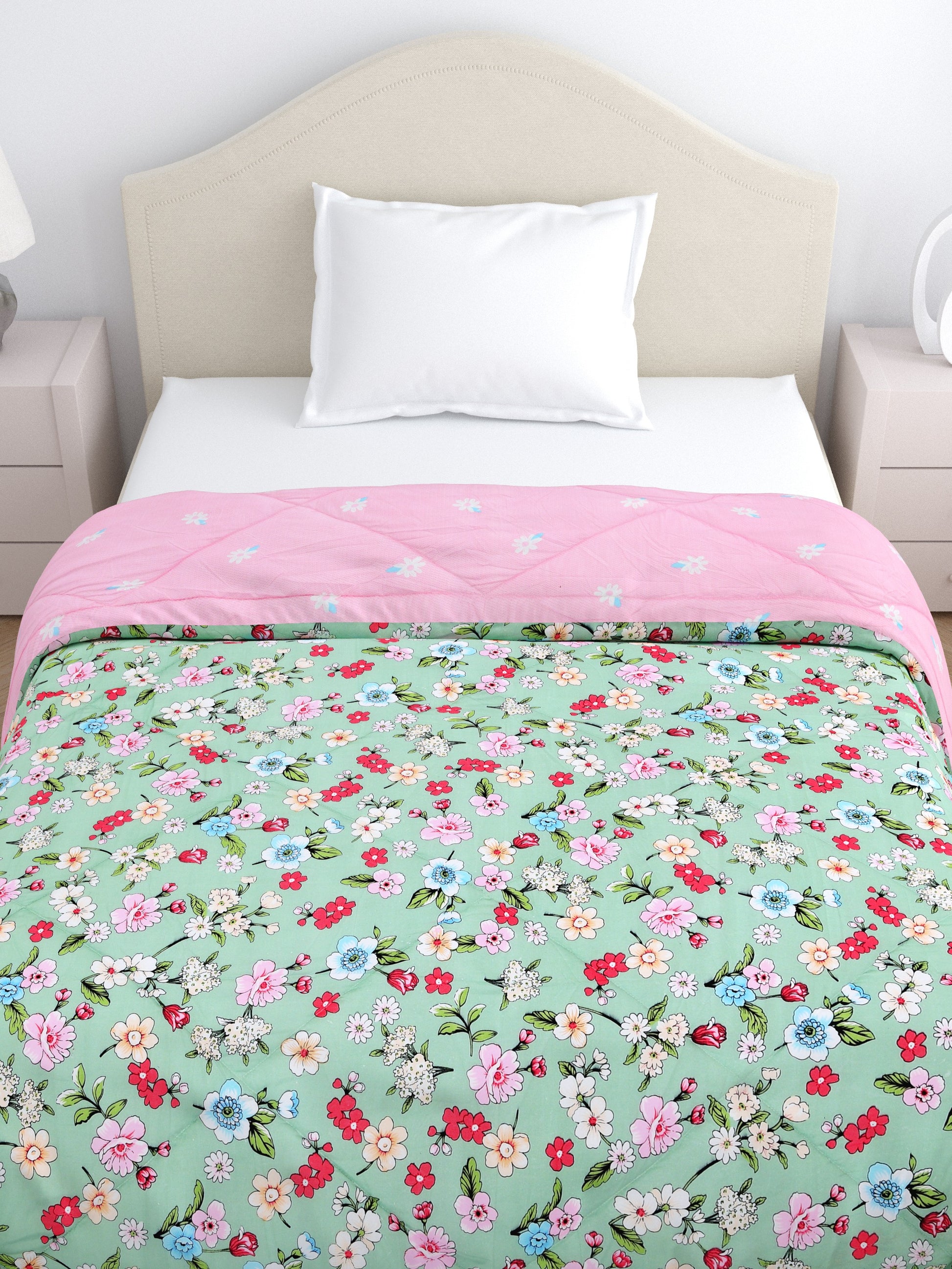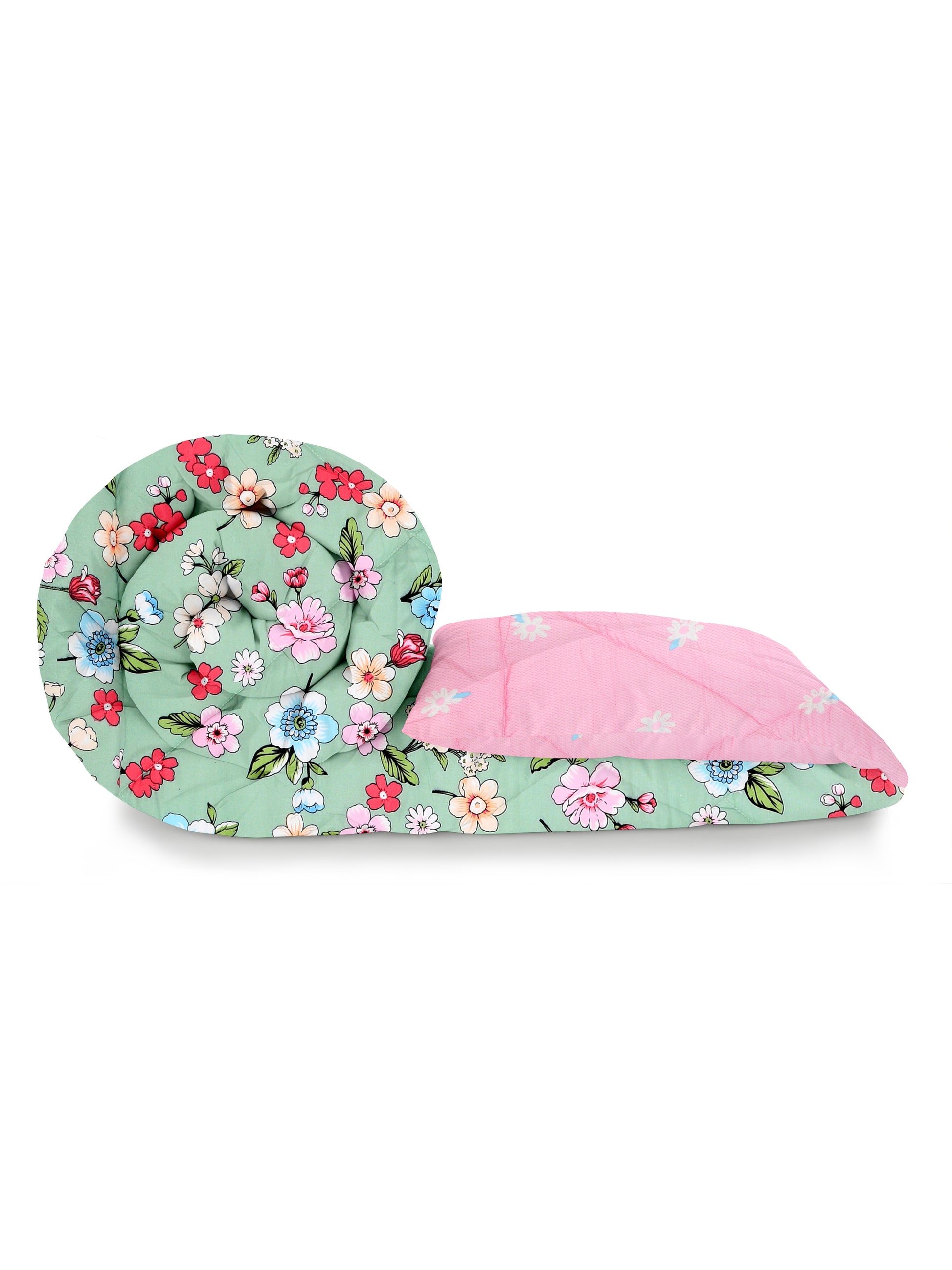 Home Ecstasy Wrinkle and Fade Resistant 150 GSM Floral Quilt (Comforter) - Colour: Green & Pink