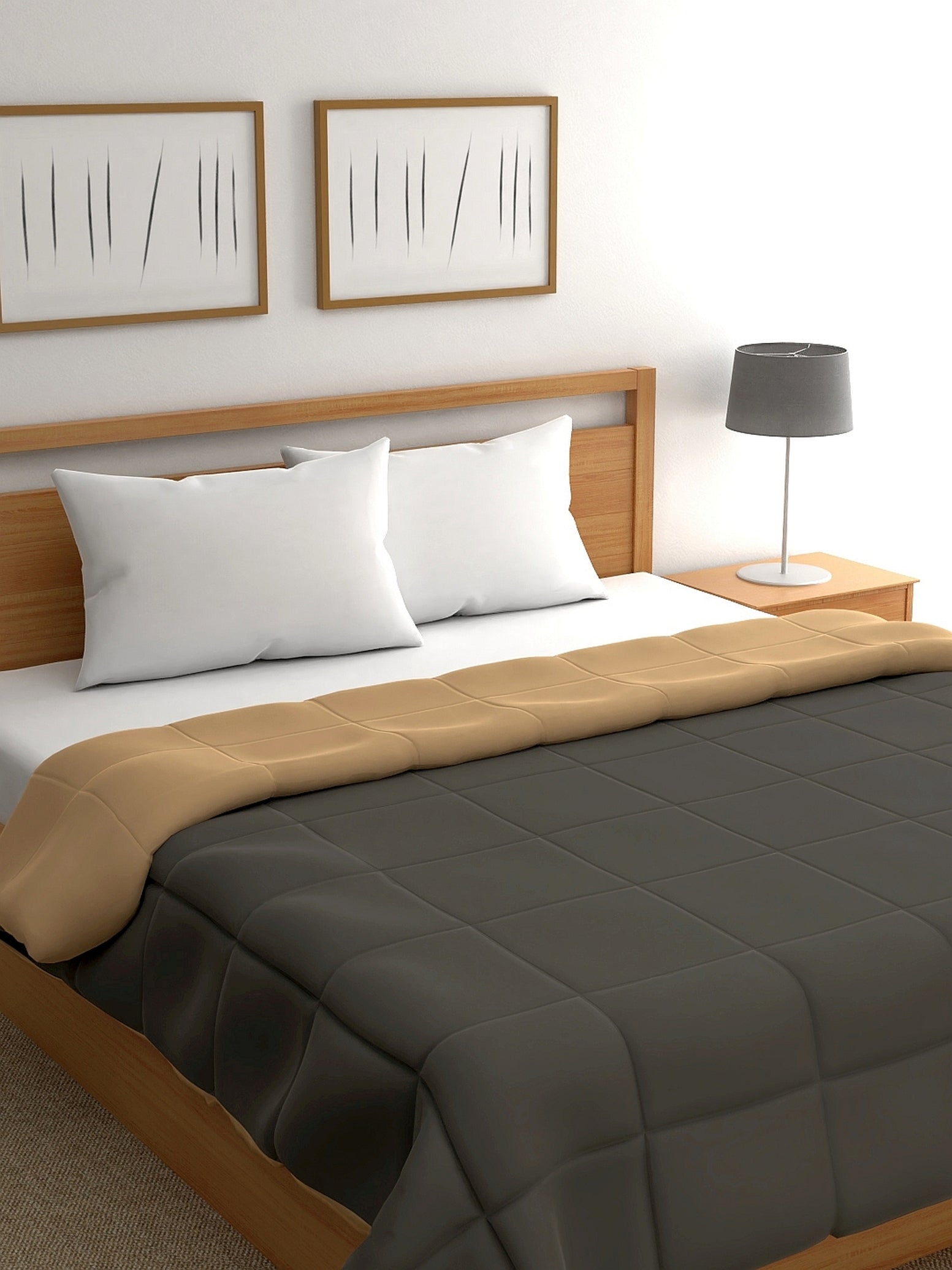 Home Ecstasy 100% Cotton Solid Comforter | 200 GSM | Beige & Grey