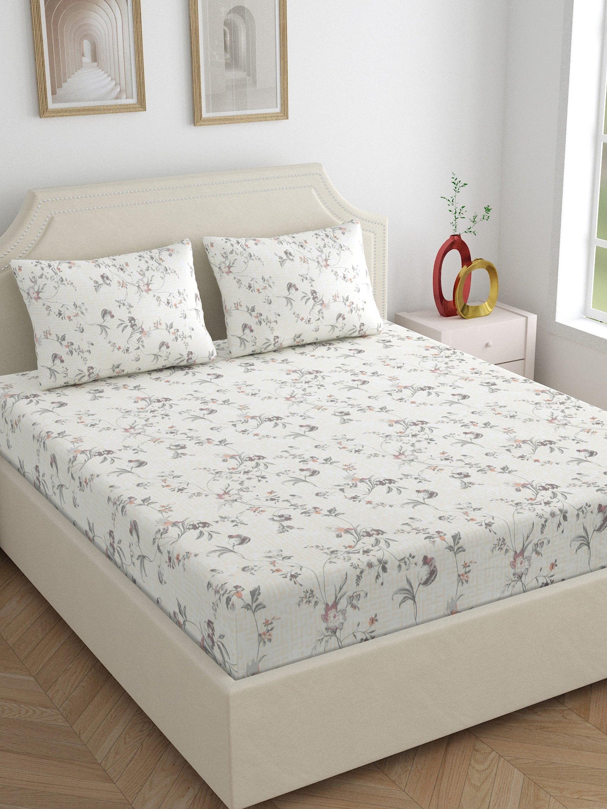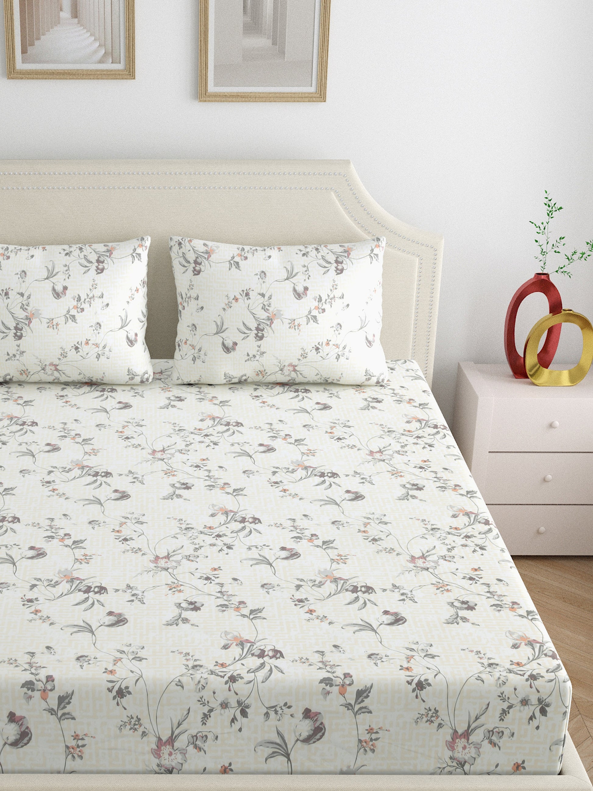 Dreamscape 100% Cotton Floral Bedsheet Set | 250 TC | Peach