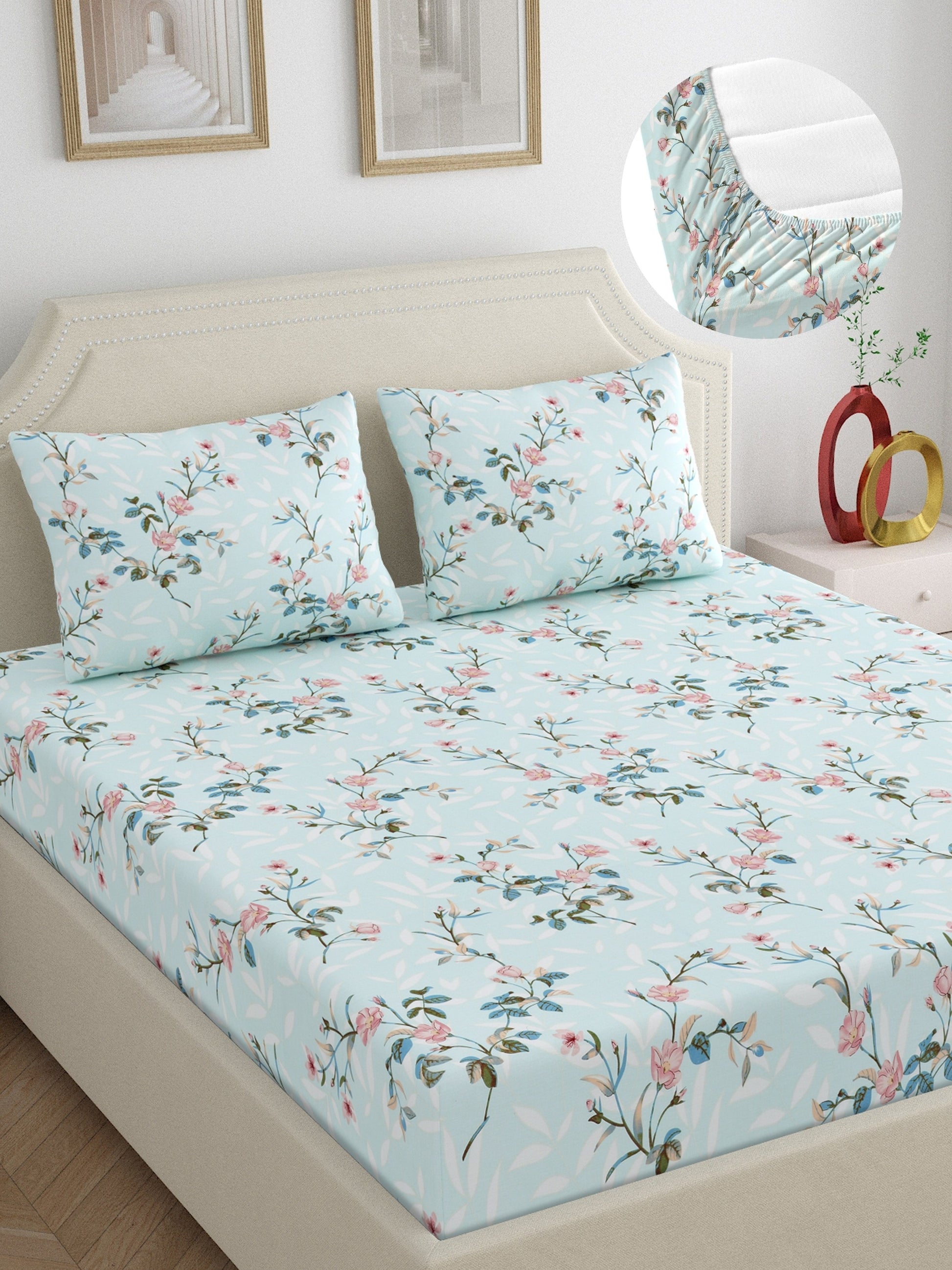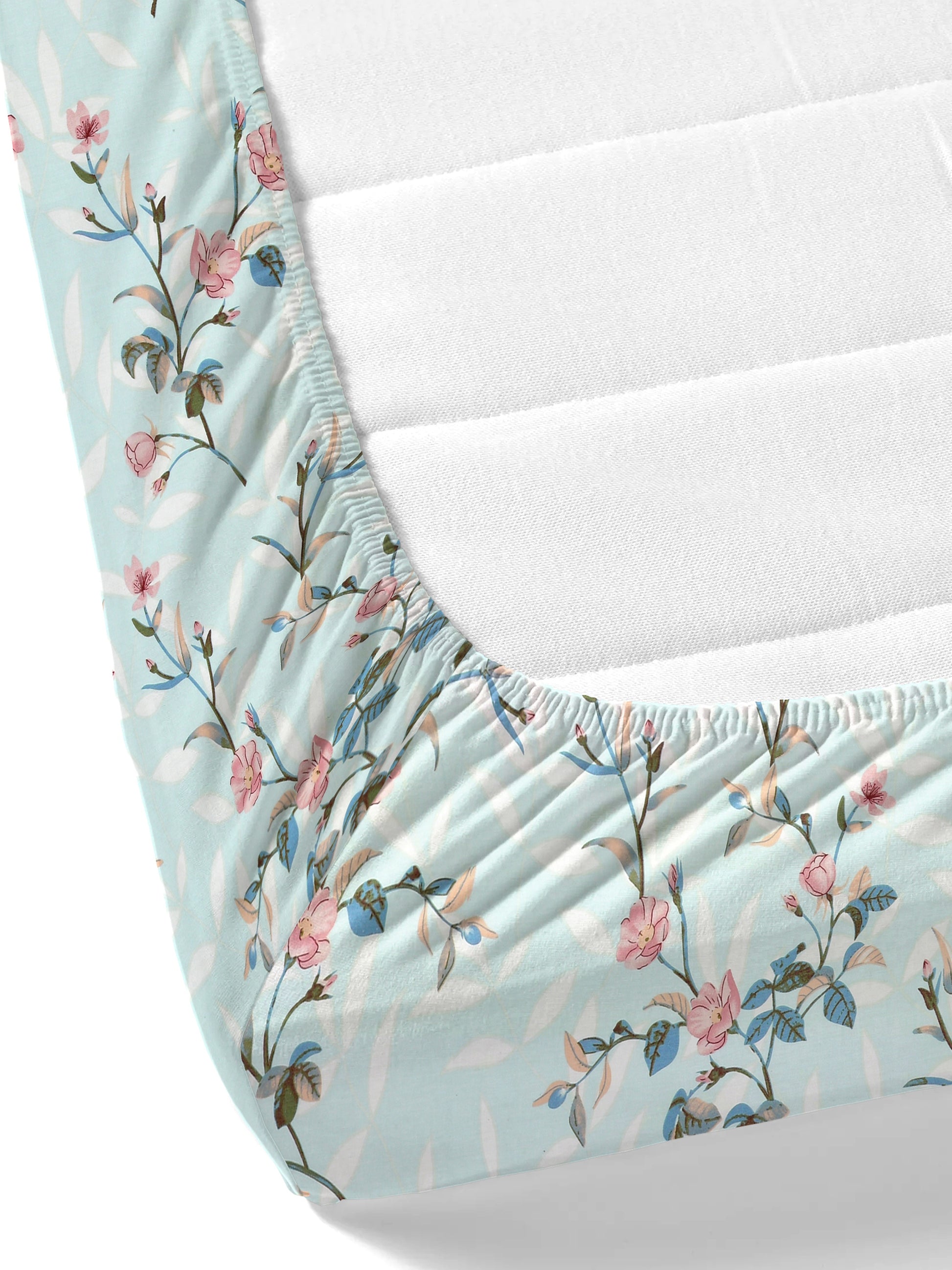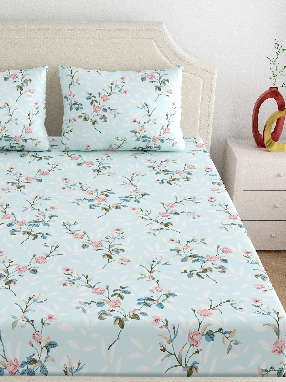 Dreamscape 100% Cotton Floral Bedsheet Set | 200 TC | Sea Green