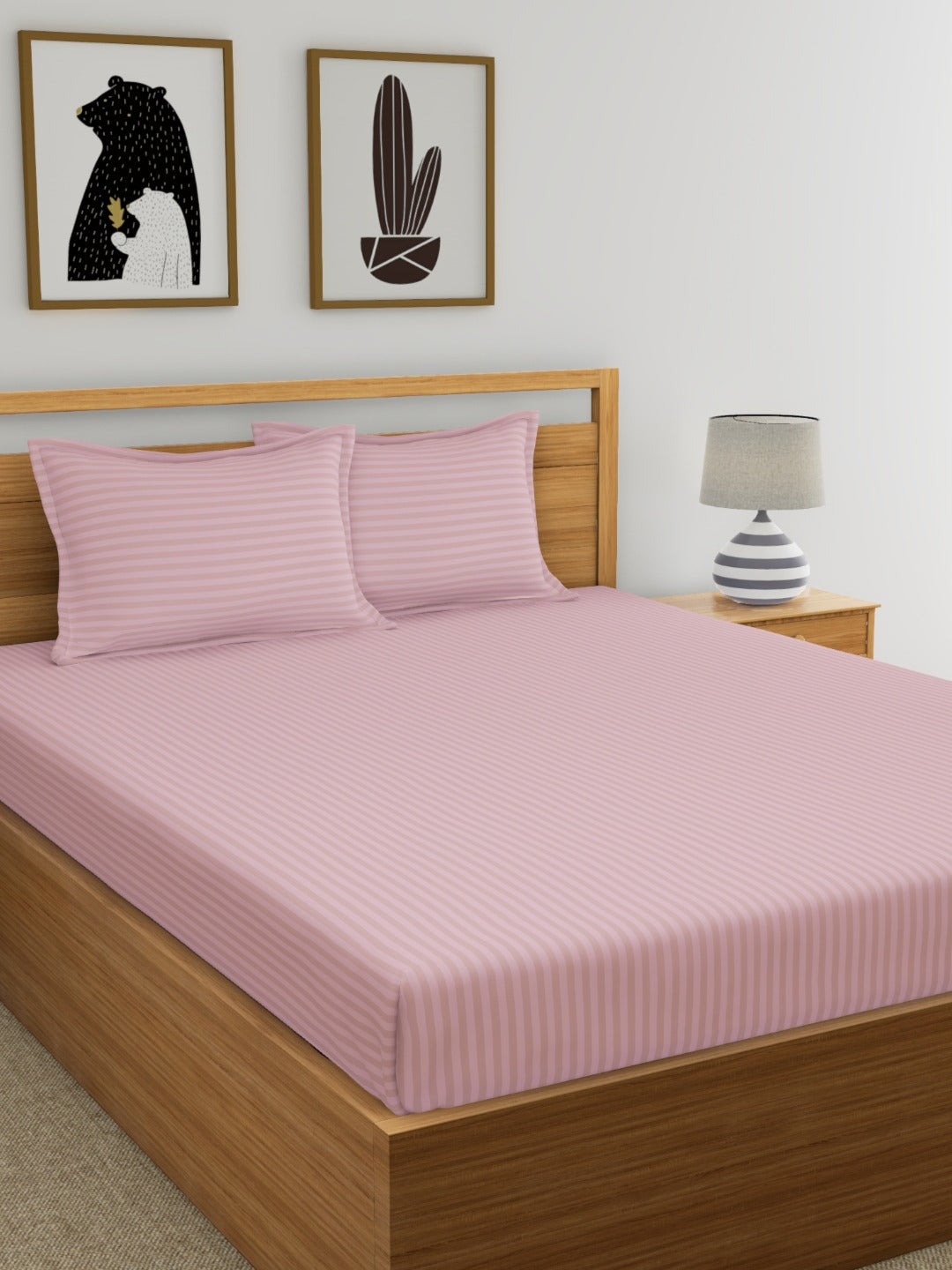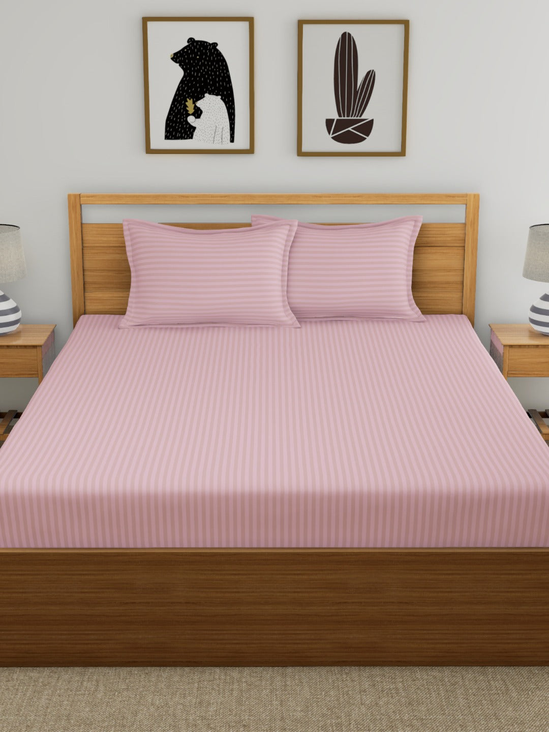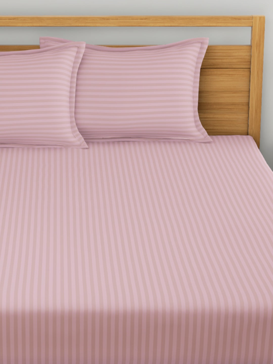 Dreamscape 100% Cotton Stripe Bedsheet Set | 210 TC | Pink